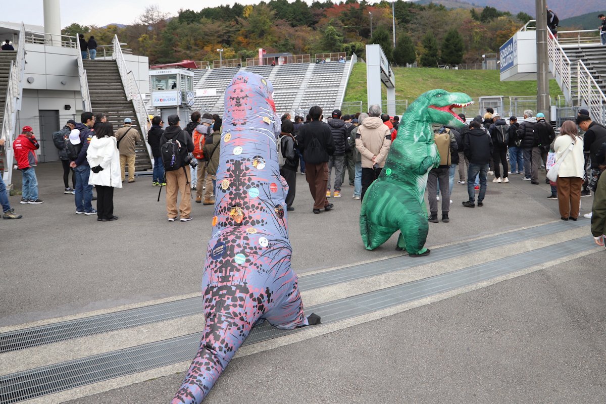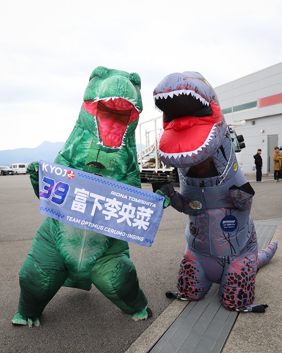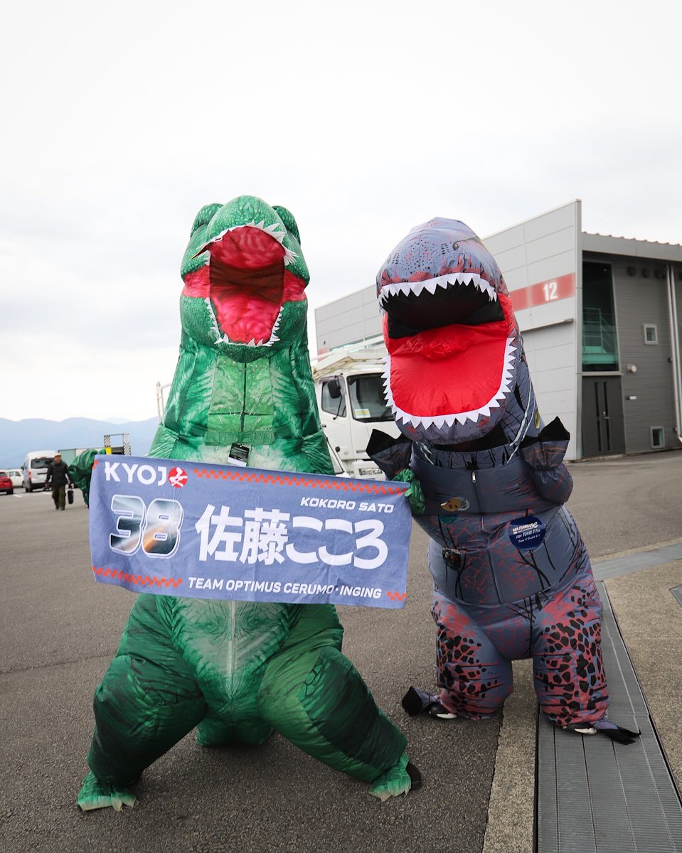 KYOJO CUP Rd.5 グリッドウォークの待機列に #レキシー🦖 @Rexy15_ が普通に並んでた。😳 #佐藤こころ 選手 @kokosato_0304 #富下李央菜 選手 @tomishitariona の応援をお願いしたら、快くやっていただけました。👊😄📢 ありがとうございました。👍 #kyojocup #inging pic.x.com/B7a9mqfb0D