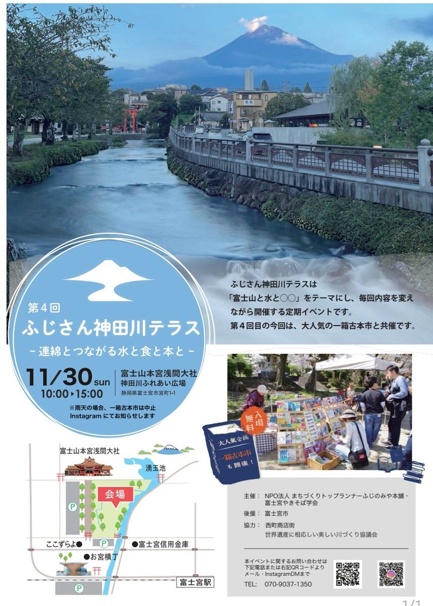 🐘ぞうさん書店次の出店は11/30(日)富士宮ふじさん神田川テラスの一箱古本市。年内最後の参加イベント。全力で楽しむぞ〜🐘📚️📚️📚️ #富士宮一箱古本市 #ふじさん神田川テラス #富士山本宮浅間大社 pic.x.com/xPw66bqVJo