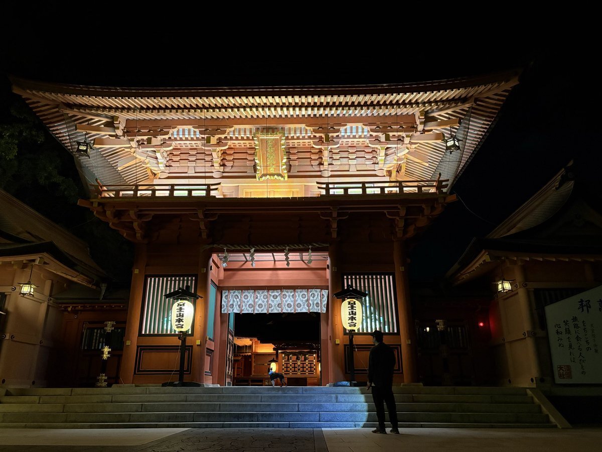 そう言えば、今日JAPAN🇯🇵🐾して来たんだった 辺りはまっっ暗だけど まだ灯りがついててドドーン⛩✨️大迫力 ちょこーん🐶 #bostonterrier #富士山本宮浅間大社 #犬のいる暮らし #みんなで夕んぽ pic.x.com/huZR2yyaAY