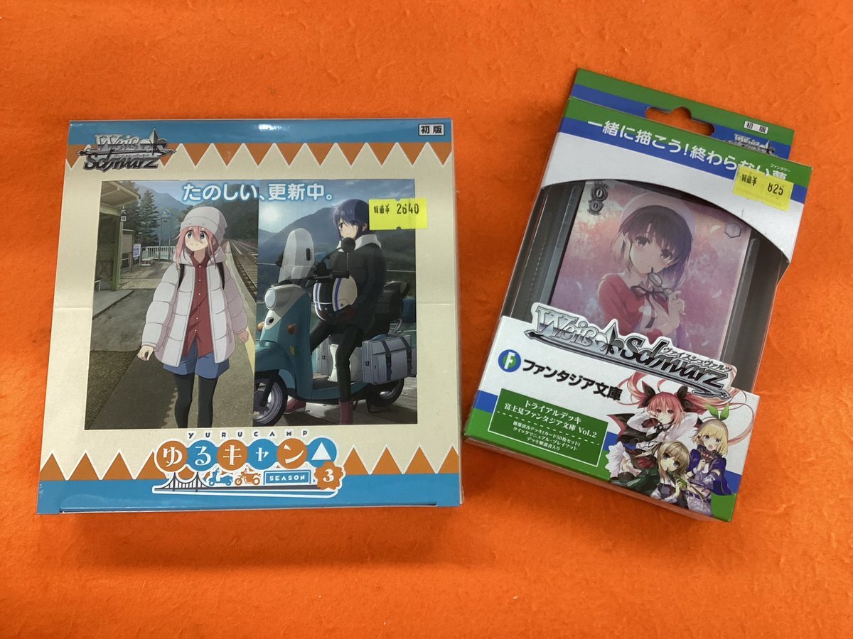 【再入荷のお知らせ📢】 #ヴァイスシュヴァルツ より、#ゆるキャン ブースターパックと #富士見ファンタジア文庫 トライアルデッキ、再入荷しました❣️ 好きなアニメでカードを始めてみよう❤️‍🔥 皆様のご来店お待ちしております‼️ #ヴァイス pic.x.com/wGdRy8ZsjS