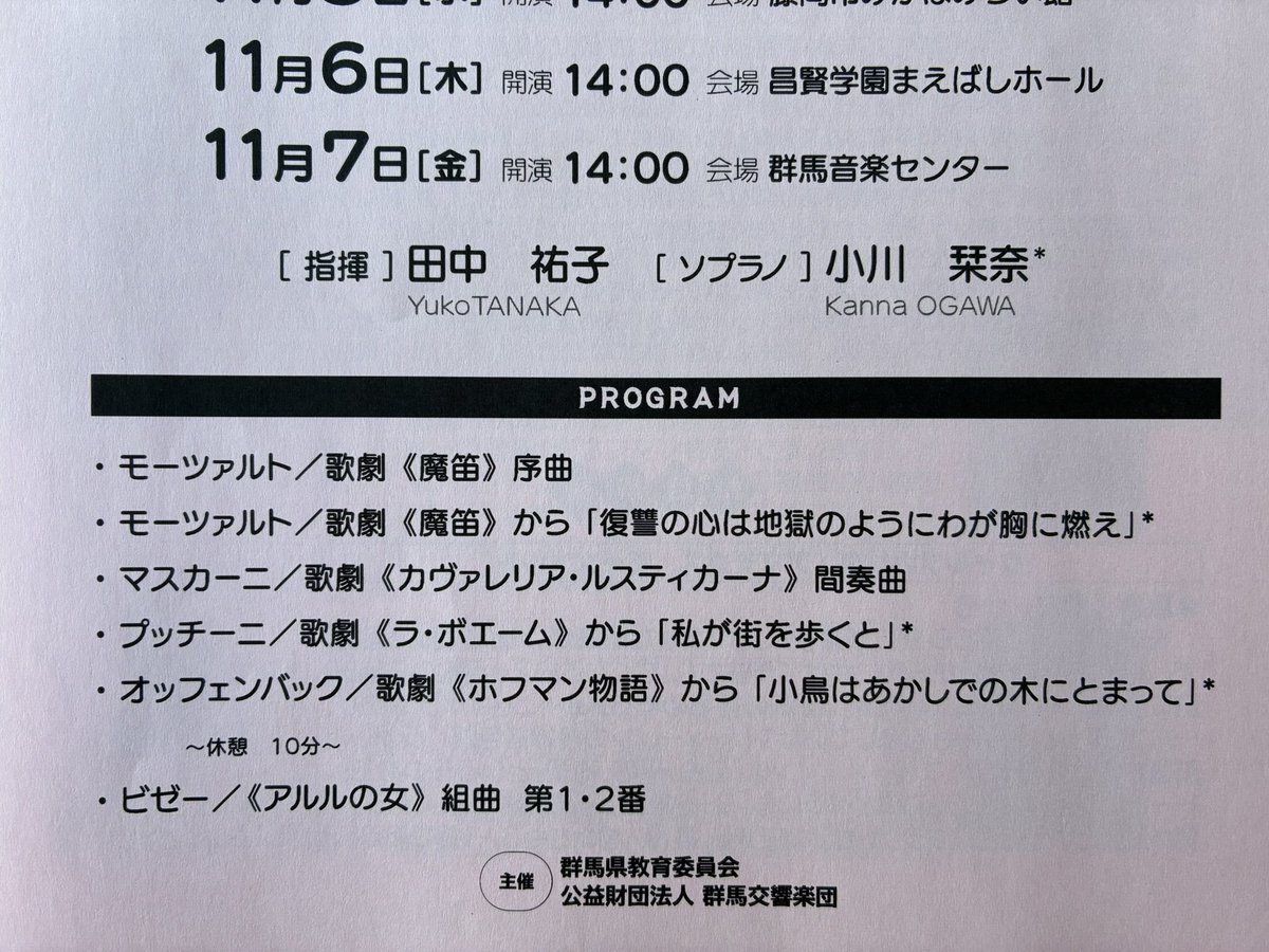 本日は群響高校音楽教室で藤岡市みかぼみらい館へ🚌🎶🚚🎵 藤岡中央高校の皆さま!ご来場ありがとうございました✨ ✅魔笛序曲、夜の女王のアリア ✅カヴァレリア・ルスティカーナ間 ✅ムゼッタのアリア ✅人形の歌 ✅アルルの女 11/7は大人も音楽教室へ! #指揮 #田中裕子 #ソプラノ #富永果捺子 pic.x.com/blsVOY4qgR