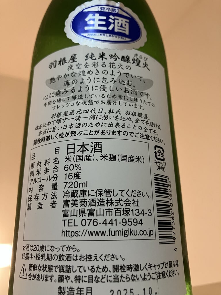 @ikkokuyasaketenのInstagram投稿をチェック instagram.com/p/DQLWbIckrbQ/… 希少な酒米「富の香」で。 羽根屋 富の香 純米吟醸生 米の量さえ確保できれば羽根屋の中心商品となりうるお酒です。 華やかで膨らみのある味わい。 キラキラしたラベルにぴったりな味わい。 #羽根屋 #富の香 #富美菊酒造 #富山