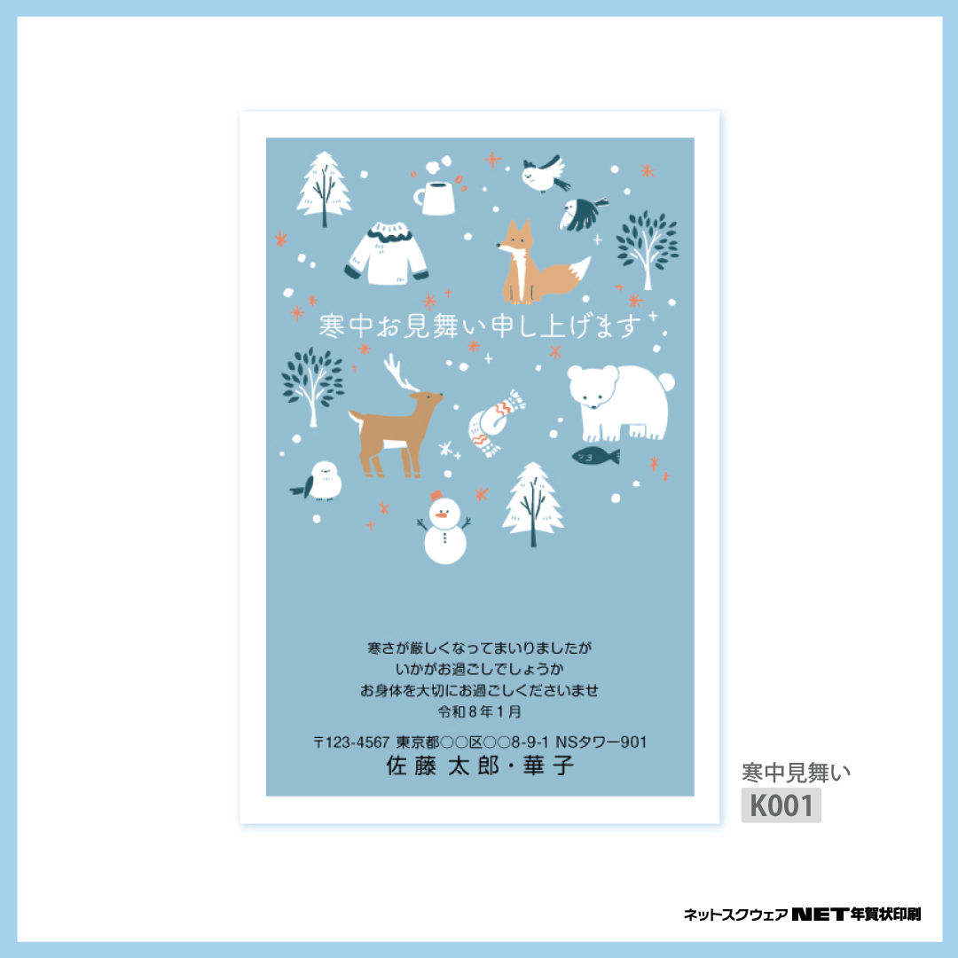 / おすすめデザインをピックアップ \ 寒中見舞い【K001】 冬のモチーフが描かれた 北欧風のデザイン⛄️🧣 ▼ご注文はこちらから▼ nenga.print-netsquare.com #寒中見舞い #午年 pic.x.com/AM974if9Rz