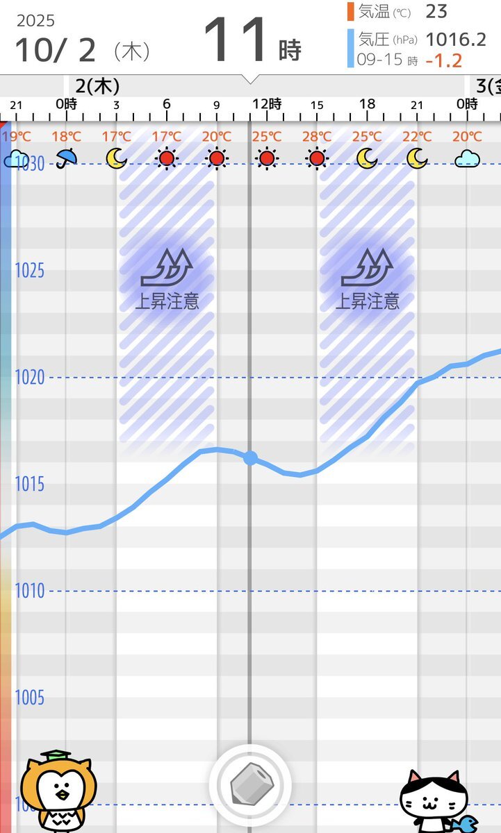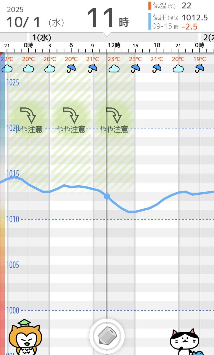 10/1(水)気象病予報 💥気温急降下&雨・寒暖差に注意 関東では23℃までしか上がらず、大幅に気温が下がるため寒暖差を感じやすいです。気圧はやや低下ですが雨も降るため、体を冷やさないようにしましょう。気温が日々大きめに変動するので日々チェックして服装を考えてみて下さい。 #寒暖差疲労 pic.x.com/8UxnFS70vz