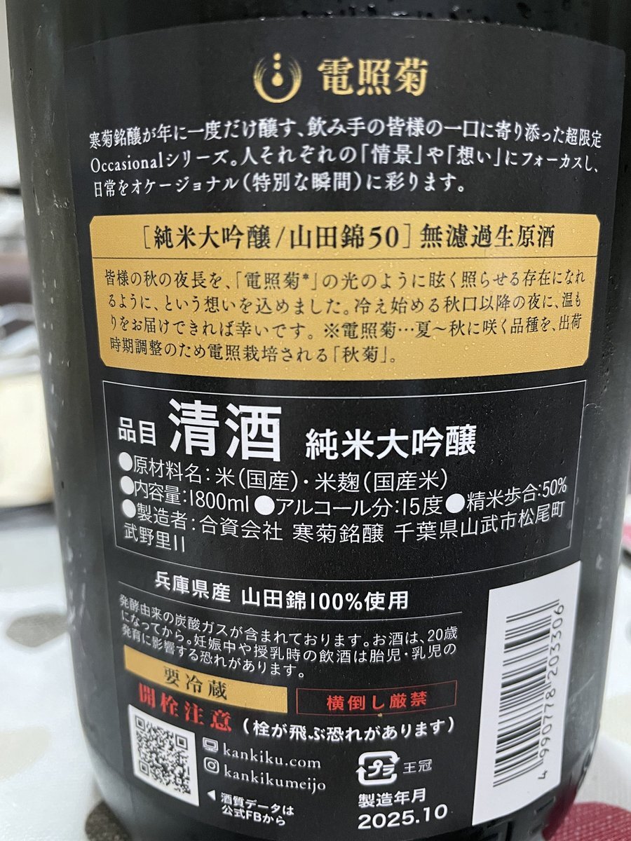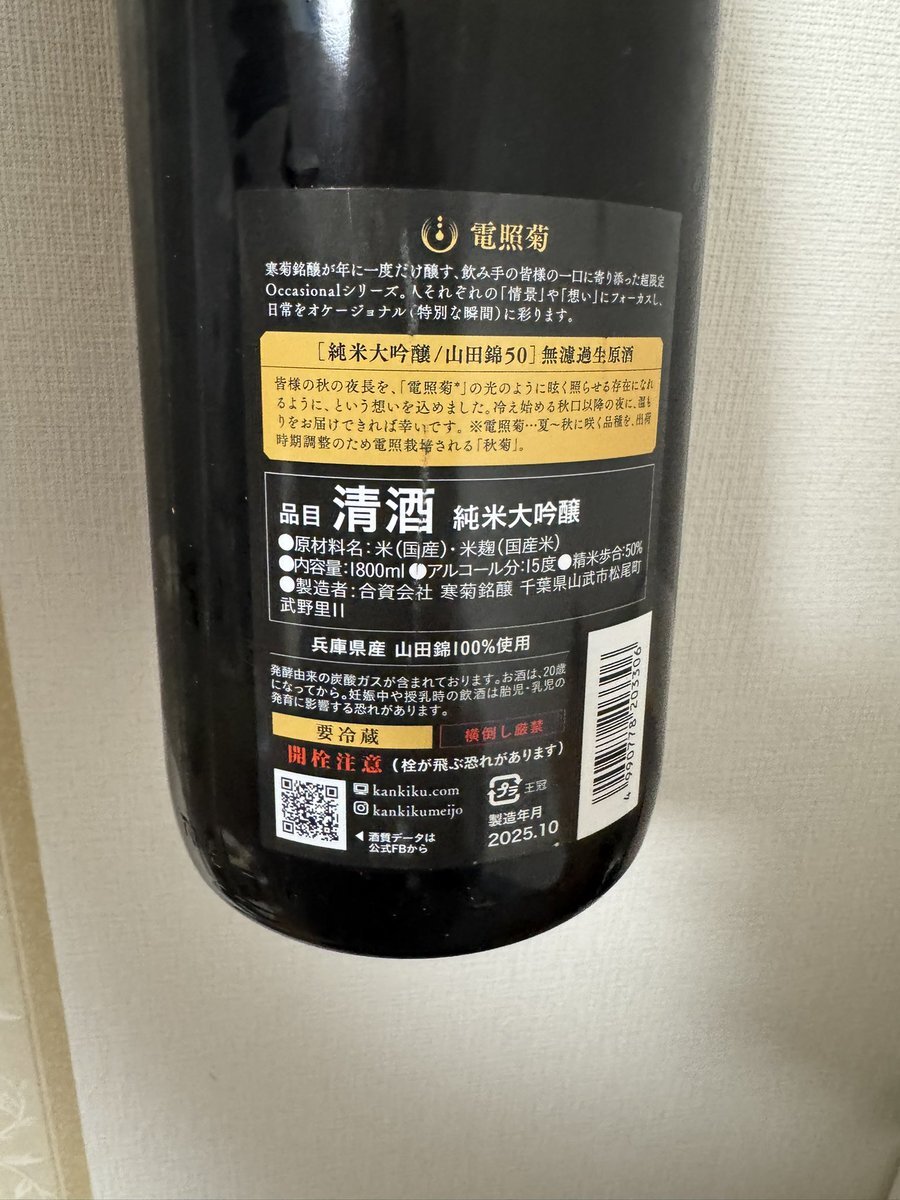 【エントリー最大P20倍】【4本以上3%OFFクーポン】【ポイント2倍】#寒菊 #電照菊 #純米大吟醸 無濾過生原酒 2025 1800ml 千葉 #寒菊銘醸 #山田錦 [楽天] #Rakutenichiba item.rakuten.co.jp/kisaki-syuka/1… ¥3.850税込 喜咲酒家 楽天 #日本酒好き お酒 #日本酒 #ワイン好き 拡散希望 高知 pic.x.com/qX2RlMPbn6