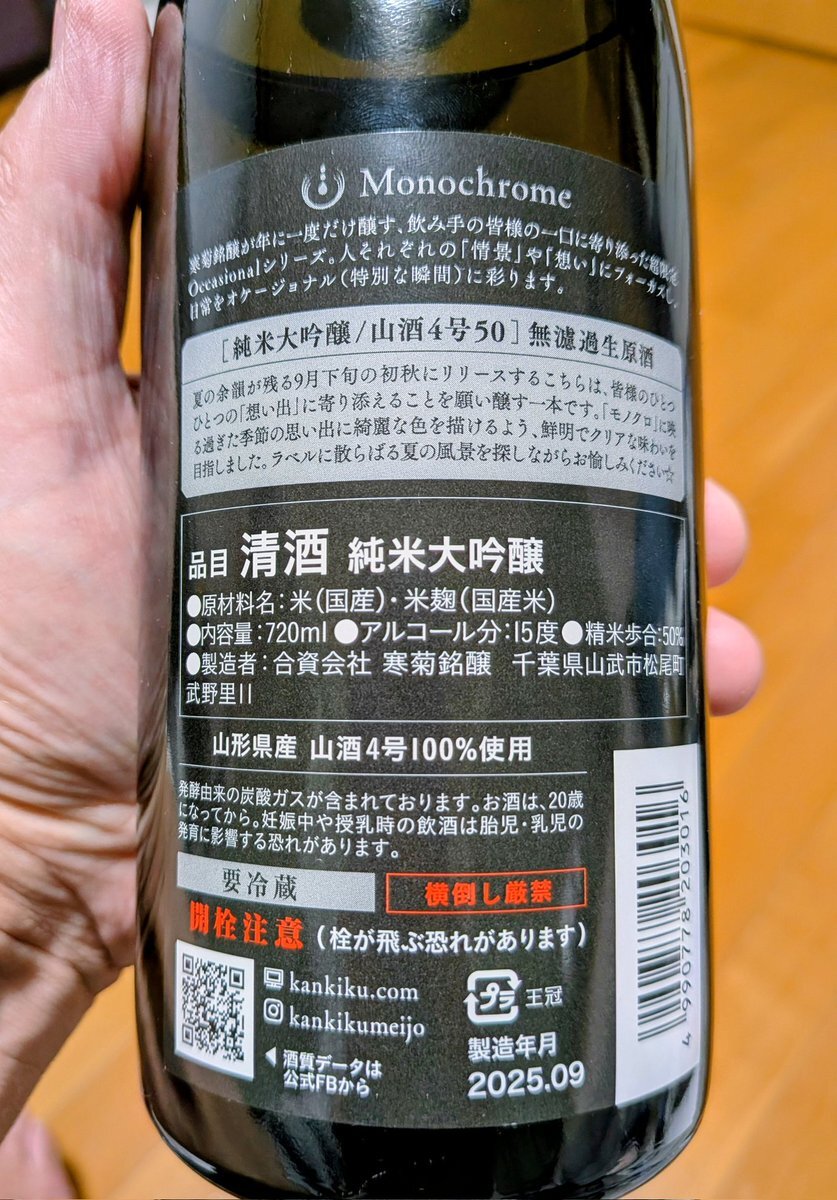 先週の千葉酒おりがらみ飲み比べに続きチョーシに乗って電照菊の無濾過生原酒 香りは大人しいが厚み多めかつ果実感充実の大吟醸。これが刺身にばっちり合うんだな🐟直汲みっぽい泡感もプラス評価。これは飲みすぎるヤバい酒だ🍶 #寒菊銘醸 #千葉酒 #降矢酒店 pic.x.com/vz0LjCMG5r
