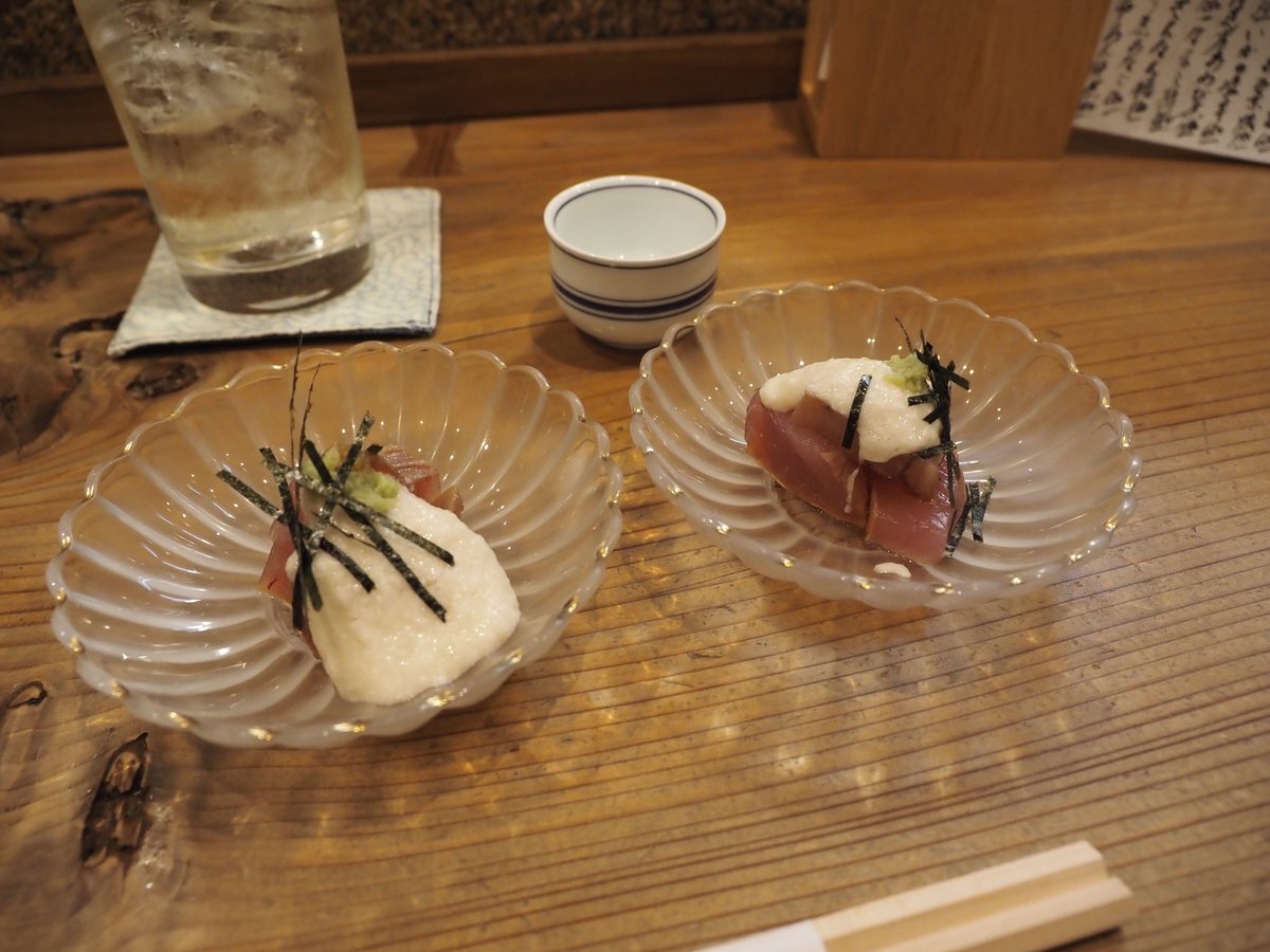 11/8(土)は夕ご飯は笹塚観音通り商店街の居酒屋 #かなう(金兎)さんに念願の来店!カウンター中心で明るくキレイな店内です!悩んでしまう位、食べたい酒肴か並んだお品書きだなぁ。お通しは出汁で漬けた備長鮪のやまかけ♪お酒は千葉県山武市の #寒菊銘醸 さんの寒菊純米吟醸おりがらみいただきます!! pic.x.com/37tIZpfpAO
