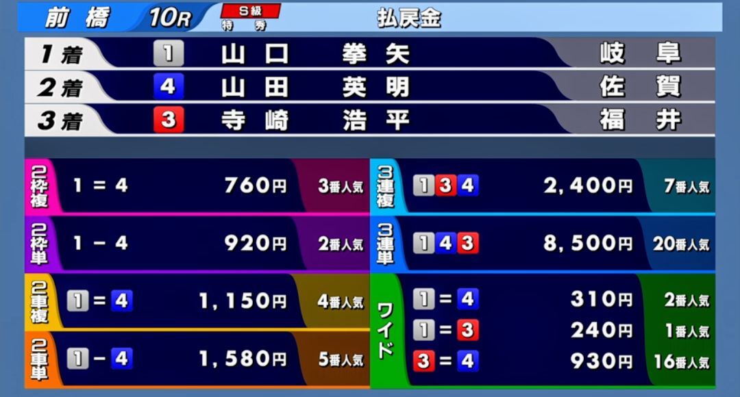 拳矢つえぇ〜!✧◝(⁰▿⁰)◜✧ 今節3勝目おめでとうございます👏 競輪祭が楽しみですね😃 #前橋けいりん #寛仁親王牌・世界選手権記念 #山口拳矢 pic.x.com/qQoBQHIBKh