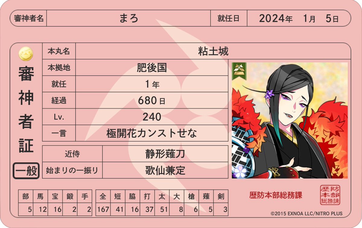 就任日まで1ヶ月きった! もう少しで5年。 みんなのレベル上げ頑張る #刀剣乱舞好きさんと繋がりたい #刀剣乱舞好きな人と繋がりたい #審神者さんと繋がりたい pic.x.com/FgG3ApOID5