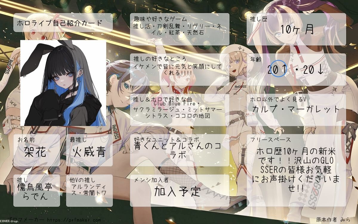【お知らせꉂꉂ📢】 フォロワー様が増えたので自己紹介カードを更新しました🫶✨ いいねでお迎えに参りますのでよろしくお願いします(❁ᴗ͈ˬᴗ͈) #火威青 #儒鳥風亭らでん #アルランディス #ピザ屋 #ReGLOSS #ホロライブ好きな人と繋がりたい #刀剣乱舞 #審神者さんと繋がりたい pic.x.com/a1cEOM0MiX