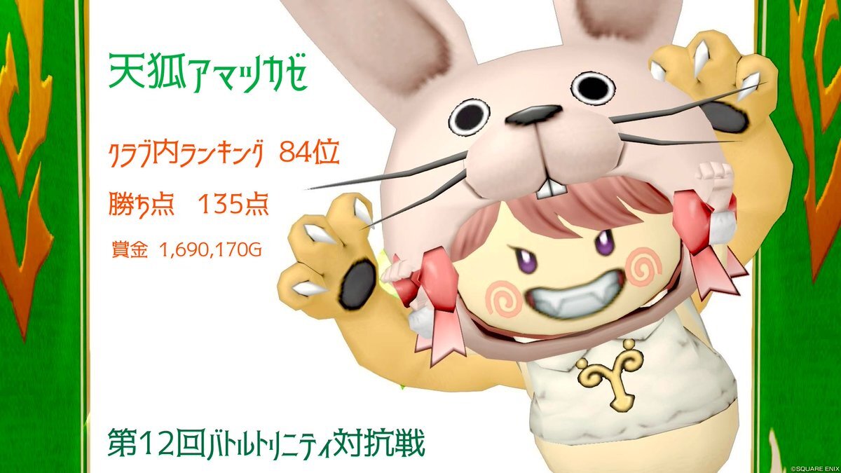 トリニティ対抗戦おちかぇさまりす! むきむきの腕付けて、やんのかステップれ威嚇しながら頑張ったの。がおー! 前半戦は遊びに行っててさぼっちゃったの。 だめなんだー! 一緒に戦ってくえたみんなー! あいがとれぃす! #天狐アマツカゼ #バトルトリニティ #対抗戦 #ドラクエ10 #DQ10 #プクリポ pic.x.com/sVcOvMVvnW
