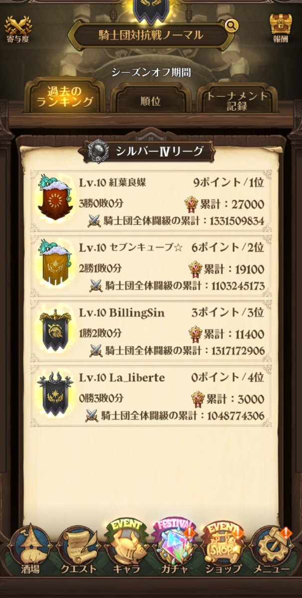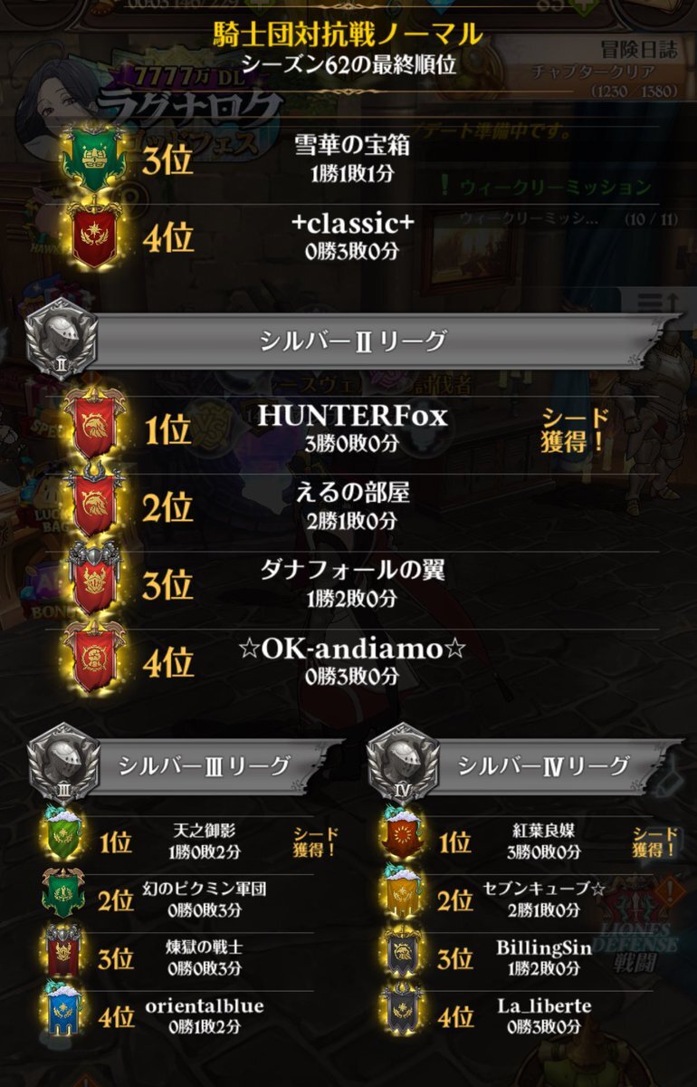 各騎士団の皆様、対戦よろしくお願いします🙇‍♂️ #グラクロ #対抗戦 #シーズン62