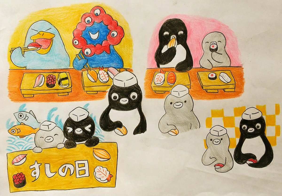 紅茶の日と同日、 #寿司の日 だったので、その日の夕食のご馳走には、それぞれお寿司を食べたよ🍣🍵お寿司屋さんで食べると特別な気分に😆🎶 #Suicaのペンギン #イコちゃん #ミャクミャク ところで、イコちゃんは先の万博でミャクミャクと仲良くなったらしく、最近よく一緒にお出かけしてるよ🎶 pic.x.com/KlZal7m5Yc