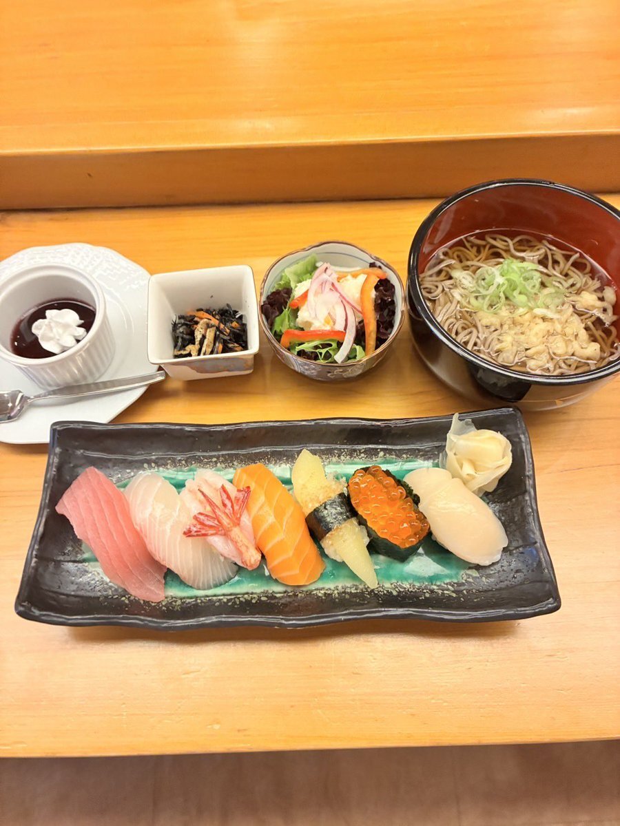 今日は良いお天気ですね♪ でも今朝は寒かったですね〜 そんな時は温かい蕎麦もついた寿司ランチはいかがですか⁉️ にぎりランチは1400円〜 13:30ラストオーダーで、お早めにお越し下さいませ〜❣️ #あうん亭光 #sushi #hakodate #函館グルメ #寿司ランチ #ランチ #函館ランチ #寿司屋の大将 pic.x.com/N8OacXxqQI