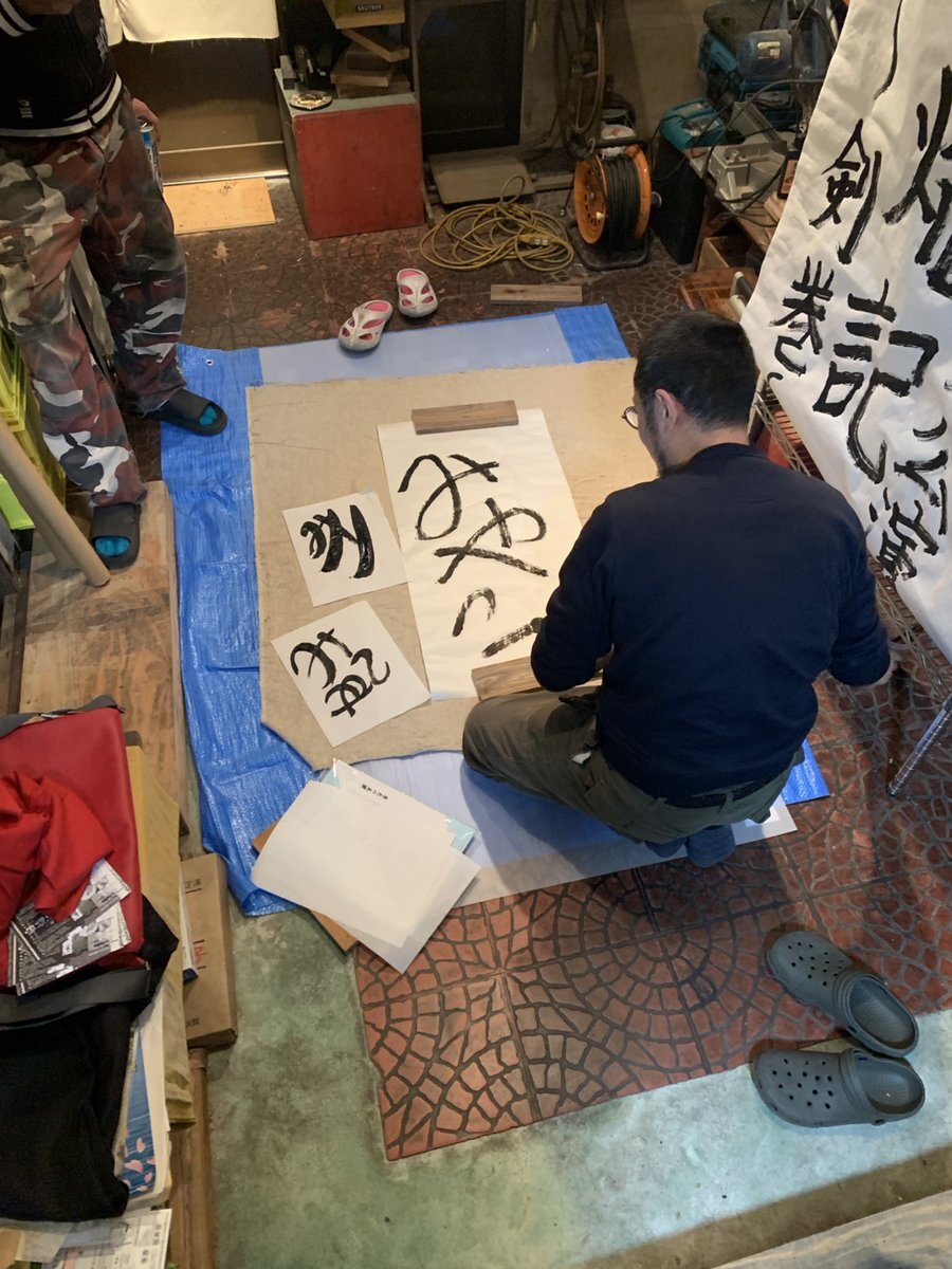 二宮書道‼️本番です‼️ もう失敗は出来ません‼️ これ劇場に飾りますので、皆さん是非観に来て写真撮ってあげて下さい(^^)/ チケット予約はこちらです↓ confetti-web.com/@/hakuenki21 #本若 #殺陣 #小劇場 #関西 #芝居 #白焔記 #書道 x.com/motowaka05/sta…