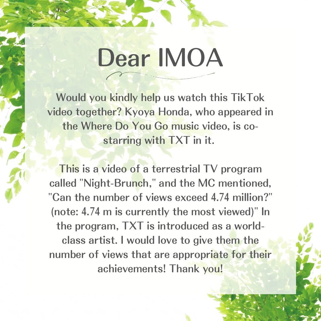 【拡散希望】 「よるのブランチ」Tiktok動画、再生ご協力のお願いです。海外MOAや本田響矢さん、小川史記さん(BUDDiiS)のファンダムにも届くよう、拡散よろしくお願いいたします🙇🏻‍♀️ 🔗vt.tiktok.com/ZSf2ffJg7/ #TOMORROW_X_TOGETHER #本田響矢 #小川史記 #よるのブランチ pic.x.com/BZ4VjdZFFl x.com/night_brunch/s…