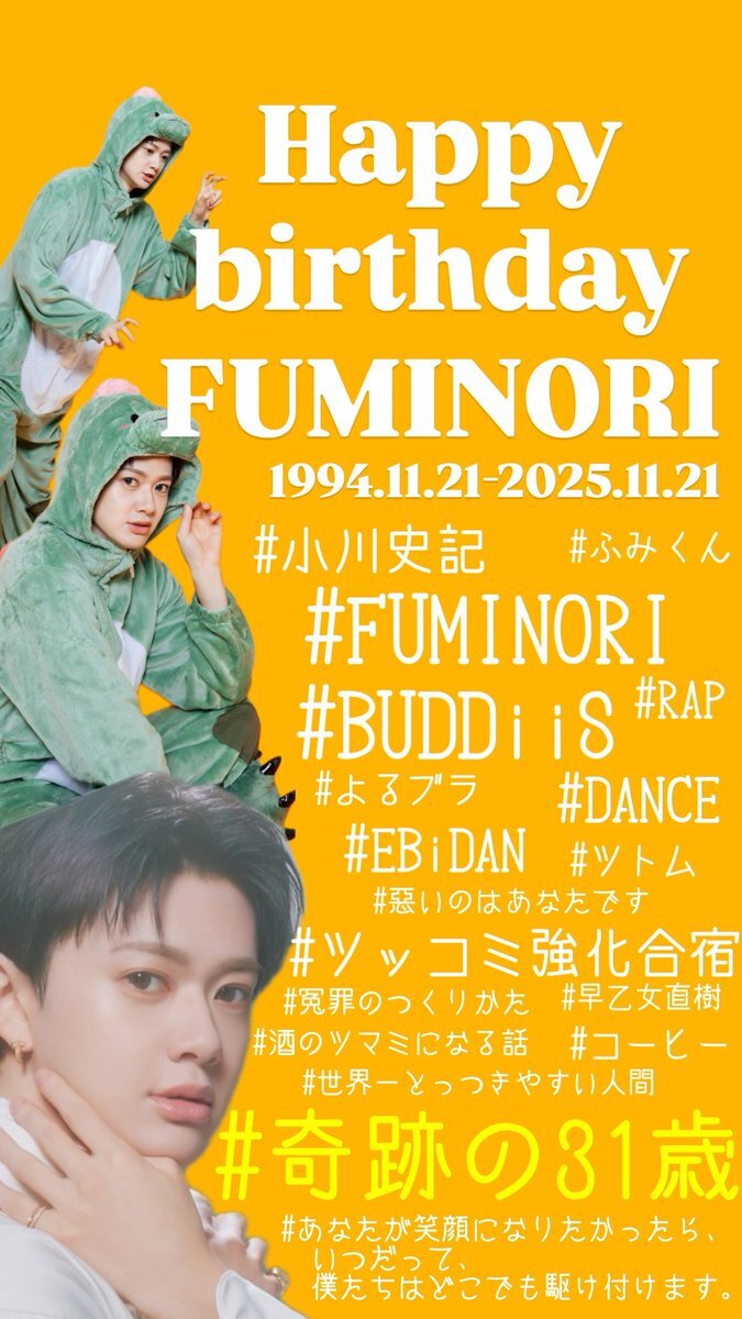 \🎂𝙃𝘼𝙋𝙋𝙔 𝘽𝙄𝙍𝙏𝙃𝘿𝘼𝙔🎂/ ✨🎁✨🎉🎂🎉✨🎁✨ 本日11/21は.... #BUDDiiS Rap / Dance FUMINORI 31歳の誕生日👑 ✨🎁✨🎉🎂🎉✨🎁✨ Happy 31st Birthday 💝 #FUMINORI