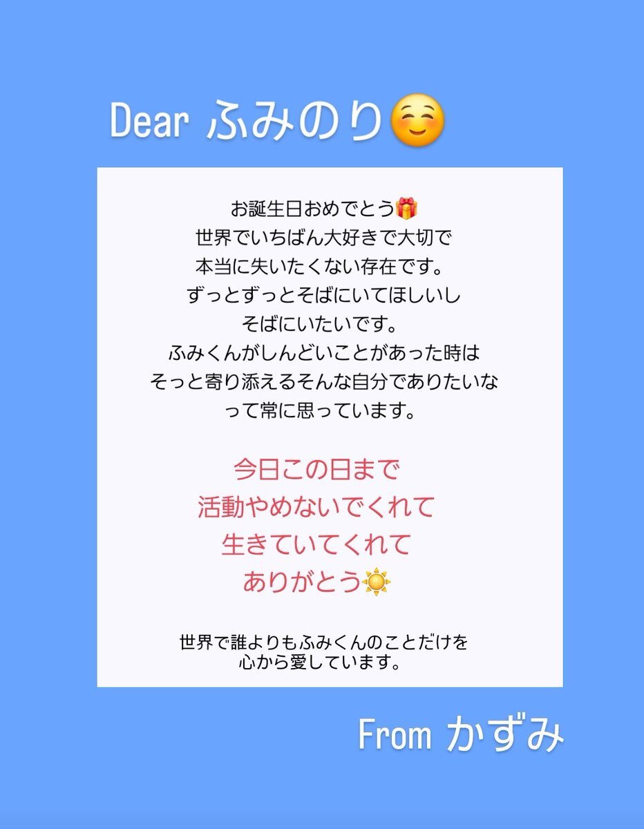 ふみ、お誕生日おめでとう☺️ 自分のことよりも大切にしたい そう思える人に出会えた私は すごく幸せ者です 出会ってくれてありがとう 生まれてきてくれてありがとう この道を選んでくれてありがとう 大好きです。 ずっと愛しています😌🤍 #Happy_FUMINORI_Day #小川史記 #BUDDiiS @fuminori_ogawa pic.x.com/yqbYqtWPII