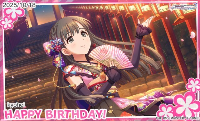 紗枝はん、お誕生日おめでとう!かいらしいだけでなく、ちょっぴりいけずなところもすき。#小早川紗枝生誕祭2025 #小早川紗枝誕生祭2025 #小早川紗枝誕生日 #デレステ pic.x.com/sVQBEYwwGE