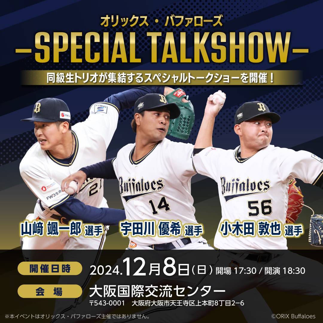 🎫チケット情報🎫 オリックス・バファローズ『SPECIAL TALKSHOW』 日時:2024年12月8日(日)18時半開演 会場:大阪国際交流センター 🎫チケット情報はこちら👇 l-tike.com/sports/mevent/… #オリックスバファローズ #オリックス #トークショー #山﨑颯一郎 #宇田川優希 #小木田 敦也 pic.x.com/RRUU9yWD1t