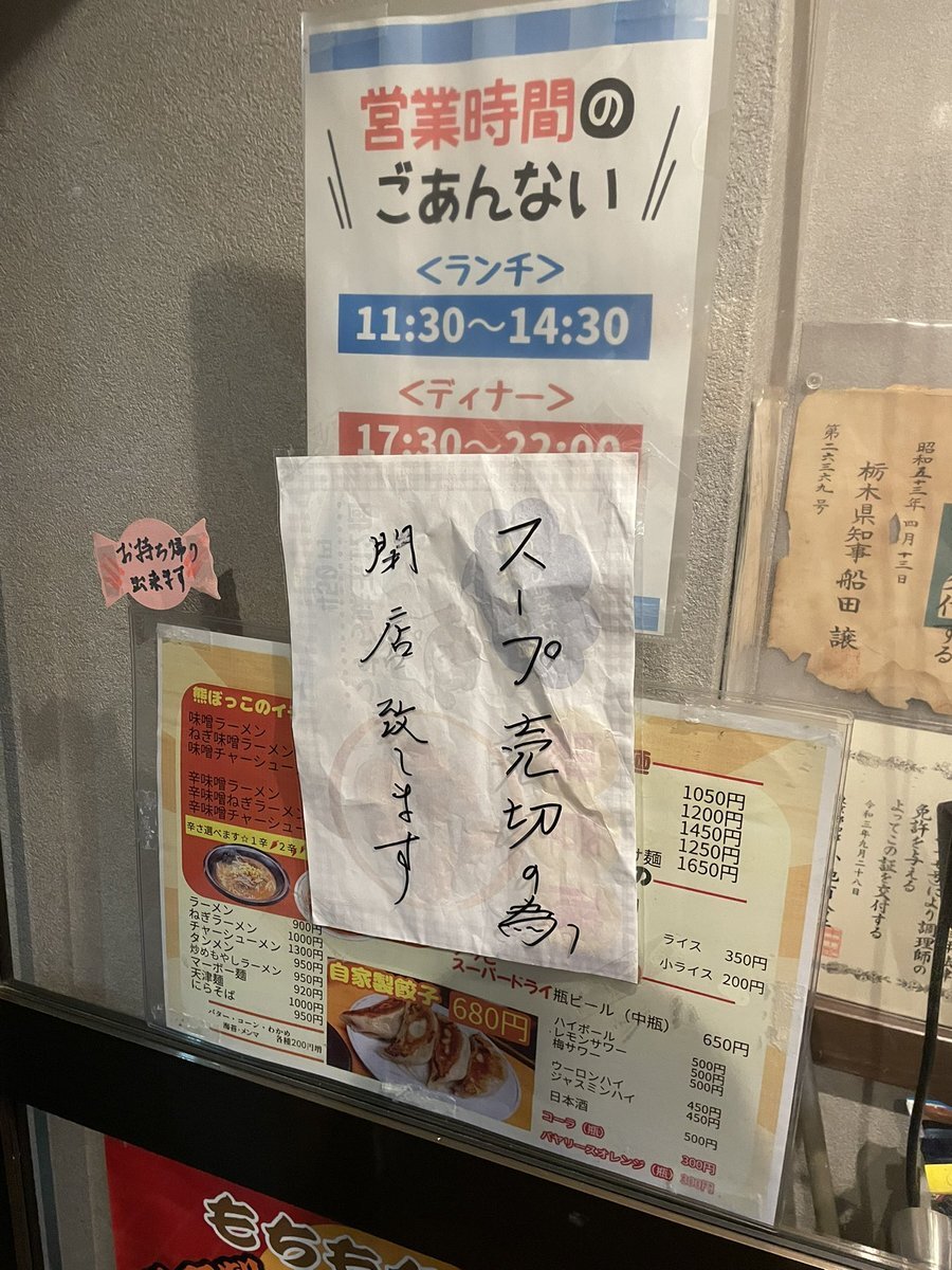 ただいまのお時間を持ちまして スープ売り切れの為閉店致します‼️ 沢山の来店ありがとうございました😊 また明日もよろしくお願いします🙇 #小村井 #ラーメン屋 pic.x.com/zyfdGjtCQD