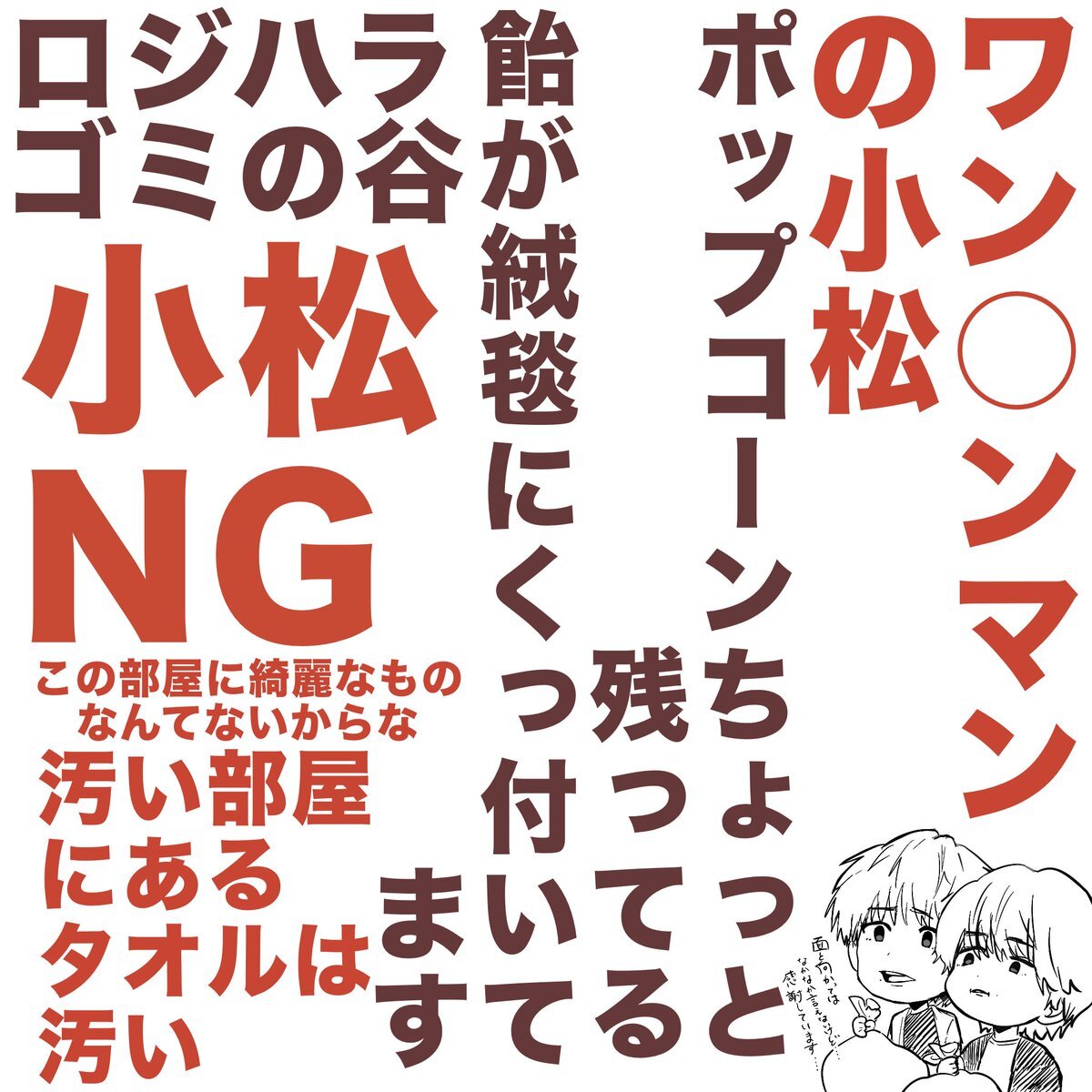 #小松屋敷 GOALOUS5の現場で小松さんの汚部屋エピソード聞くけど、 盛ってるのかなと(あまりにも小松さん否定してるし) でも落ちてたものリスト見ると案外間違ってないんだなと笑