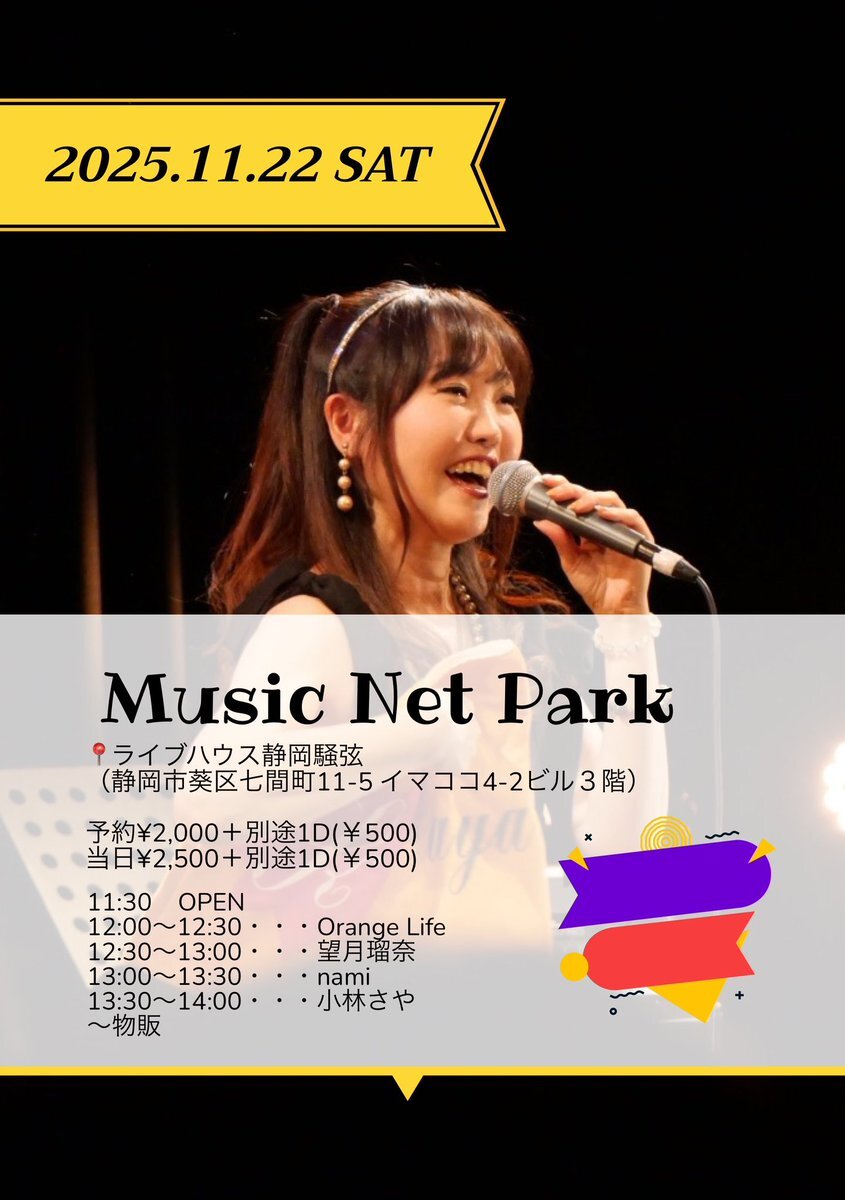 【次のライブ/出演者追加】 ご予約お願いします🙏🧡 11/22(土)「Music Net Park」 📍ライブハウス静岡騒弦 予約¥2,000+別途1D(¥500) 当日¥2,500+別途1D(¥500) 11:30 OPEN 12:00~12:30…Orange Leaf 12:30~13:00…望月瑠奈 13:00~13:30…nami 13:30~14:00…小林さや ~物販
