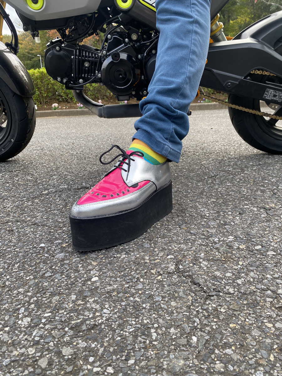 Youtubeショート撮影📸 バイクに乗るとき厚底はよくないぞ、ということで 撮影用にとんでもなくド派手な厚底靴を持参していただきました😂  #小林ゆき #BDSバイクセンサー #Youtube #バイク #交通安全 pic.x.com/spzK0D6Ppg