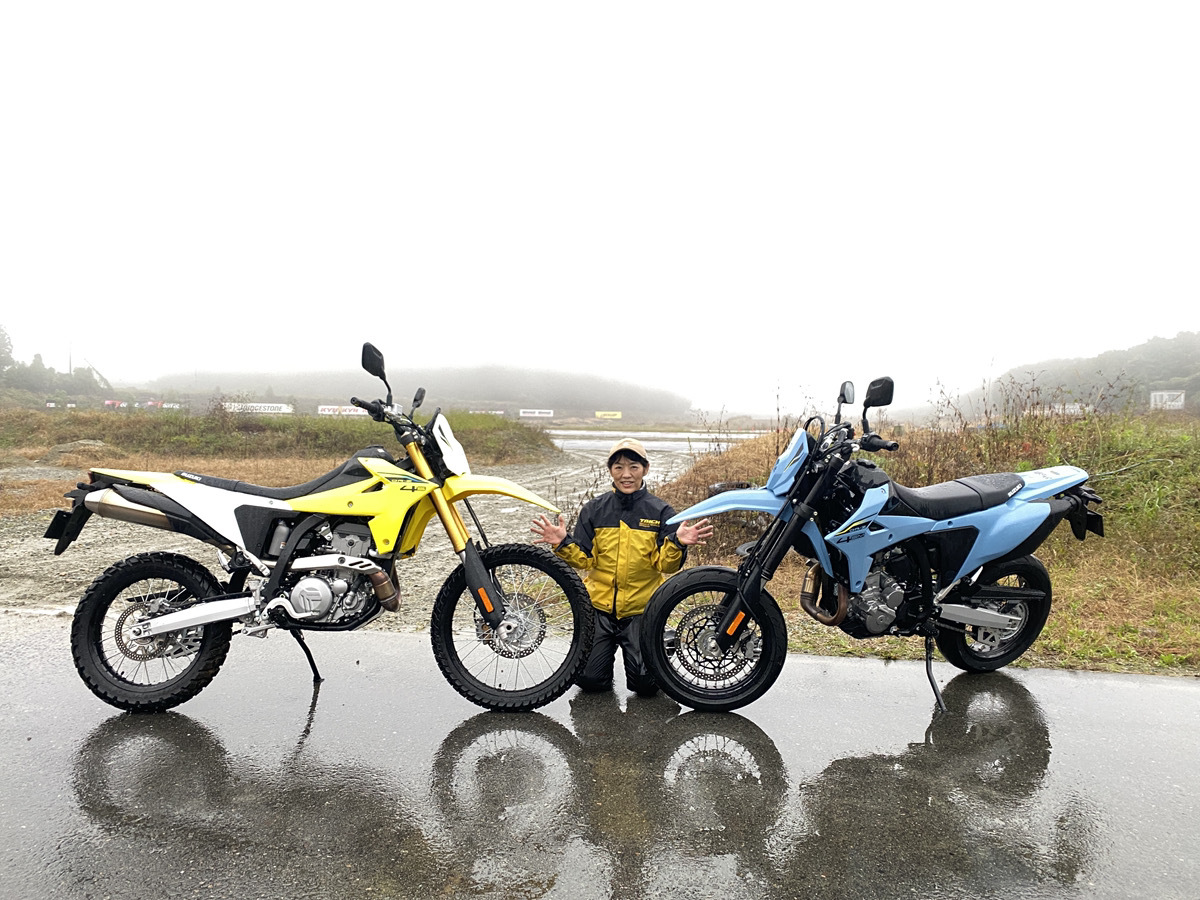 DR-Z4S、DR-Z4SMの試乗会にやってきましたー!! あいにくの雨ですがサーキット試乗インプレ、撮影してまいります📷👏 #スズキ #suzuki #DRZ4S #DRZ4SM #小林ゆき