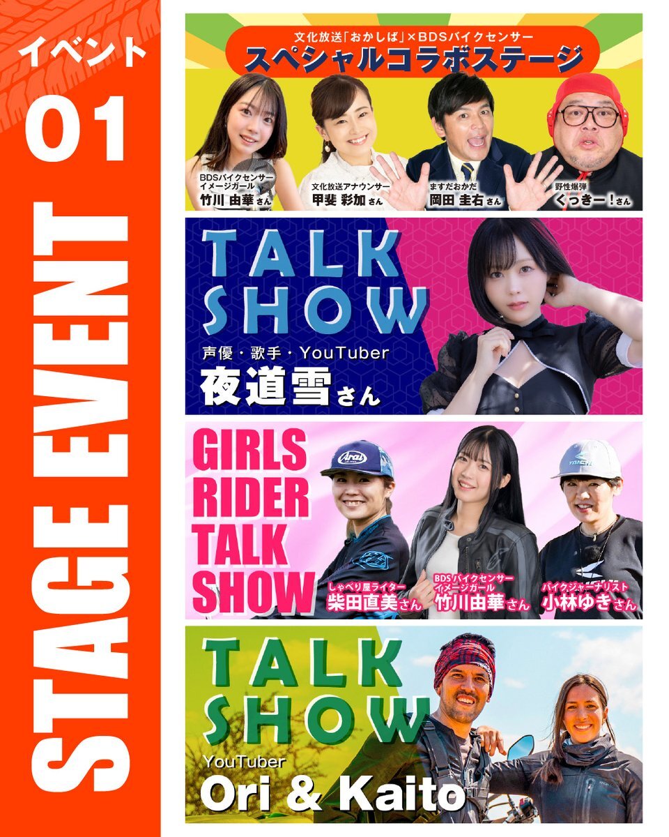 まもなく開催!!!!! #BDSバイクセンサー秋の祭典🎉✨ ーーーーーーーーーーーー トークステージには #夜道雪 さん、Ori&Kaitoさん、#野性爆弾くっきー!さん、#ますだおかだ 岡田さんなど豪華ゲスト多数!!!🚨🚨 BDSバイクセンサーYoutubeチャンネルでお馴染みの #小林ゆき さん、#柴田直美