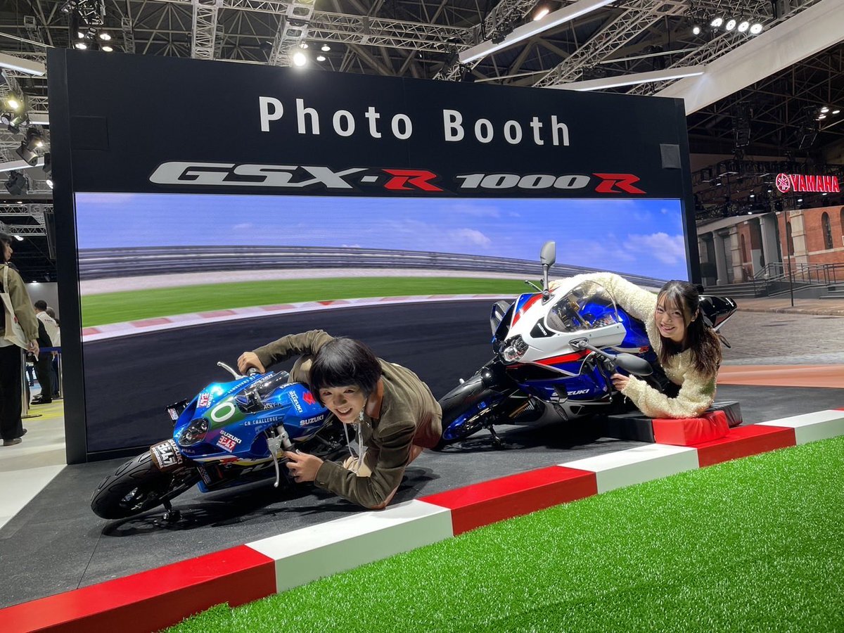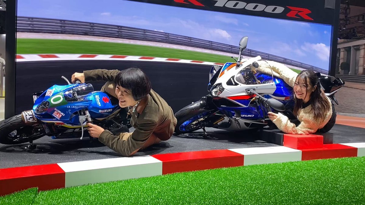 この姿勢をキープする大変さ🥹💪 #ジャパンモビリティショー2025 #suzuki #epo #GSXR1000R #小林ゆき #竹川由華 x.com/bikoongogo/sta…