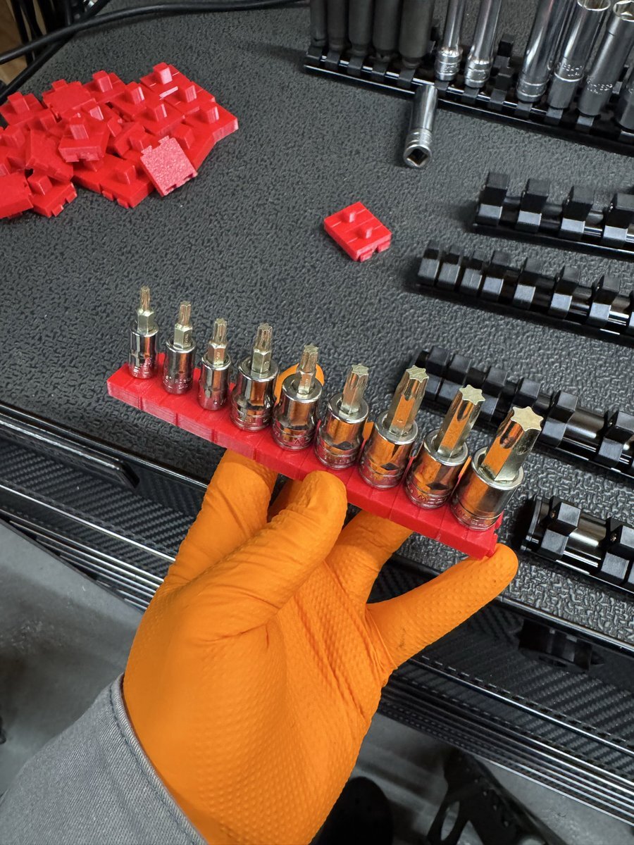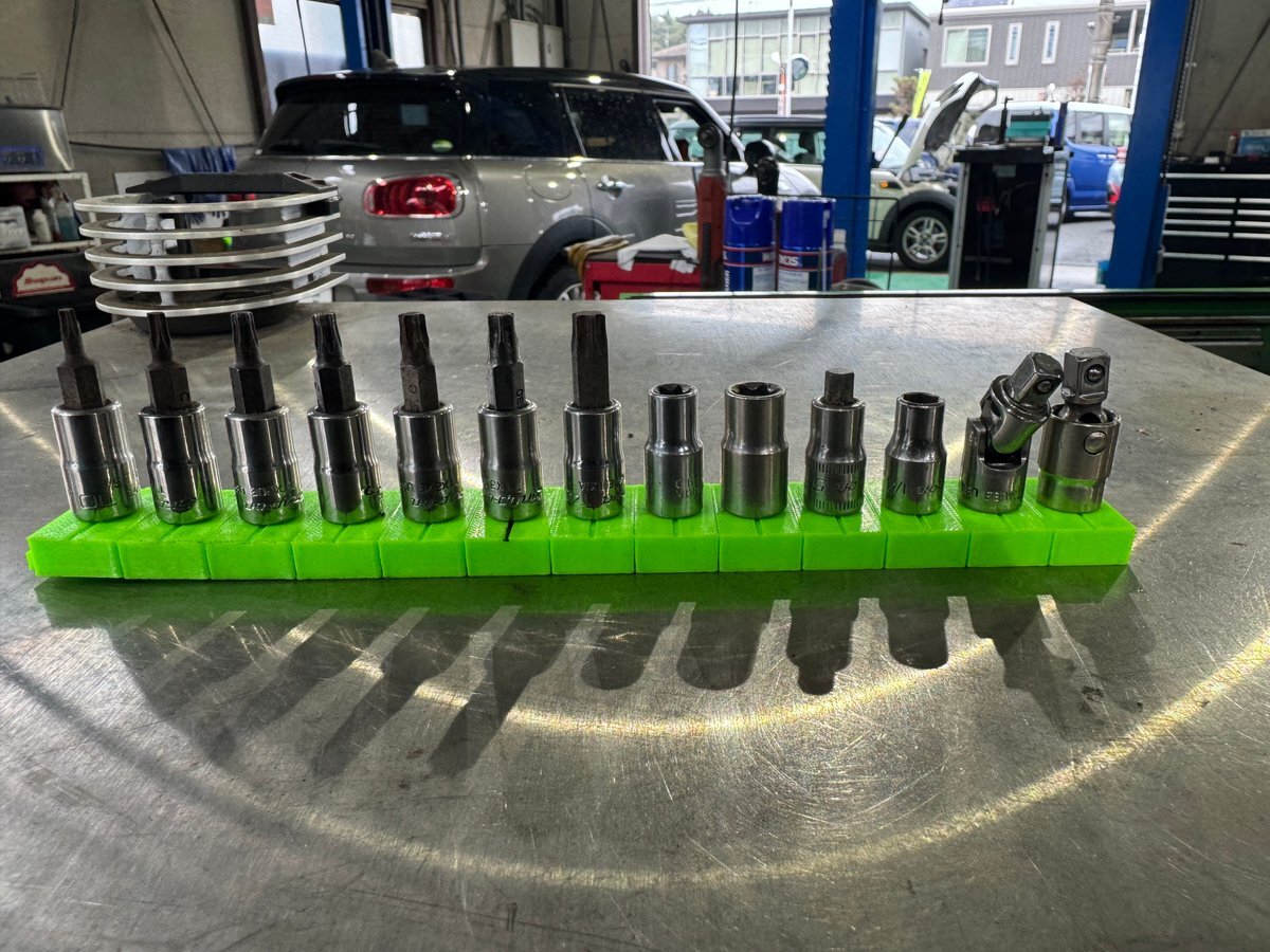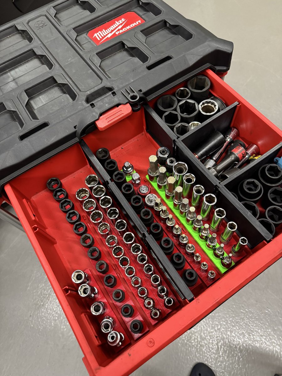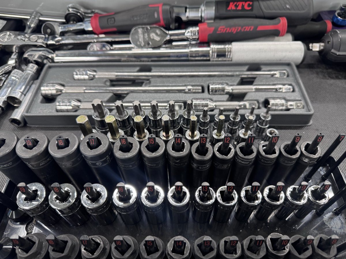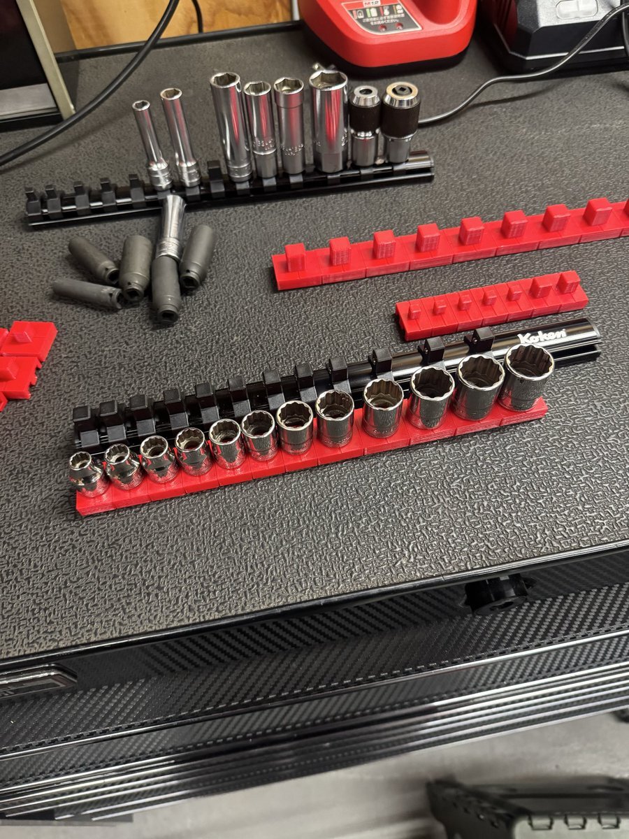 「見てくれ!俺の工具箱」でも使ってる方が多かったので、 ソケットレール変えてみました! これ、結構いいですね😎✨ トルクアダプターの収納は…… @yu_ya983 をパクらせて頂きやした🫡笑 #見てくれ俺の工具箱 #工具収納 #ソケットレール #GEARFIX #整備工具 #整備士ライフ #小林モータース pic.x.com/GhUGMbyd5E