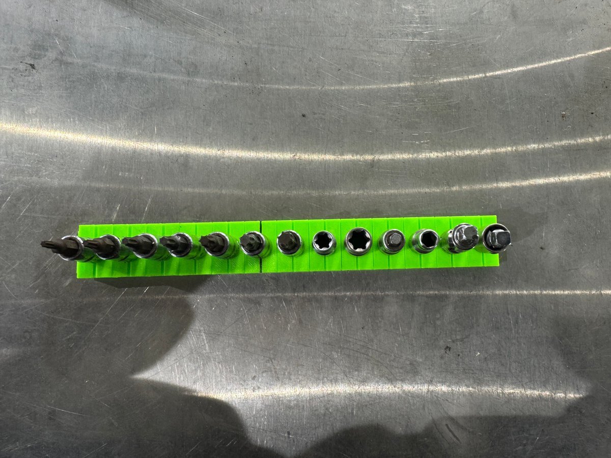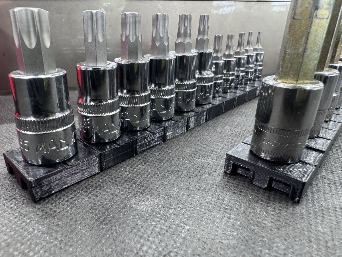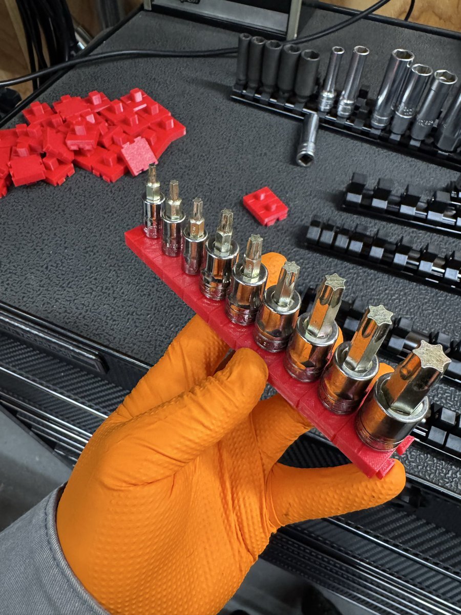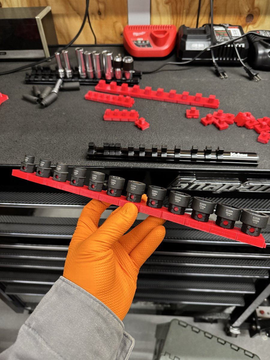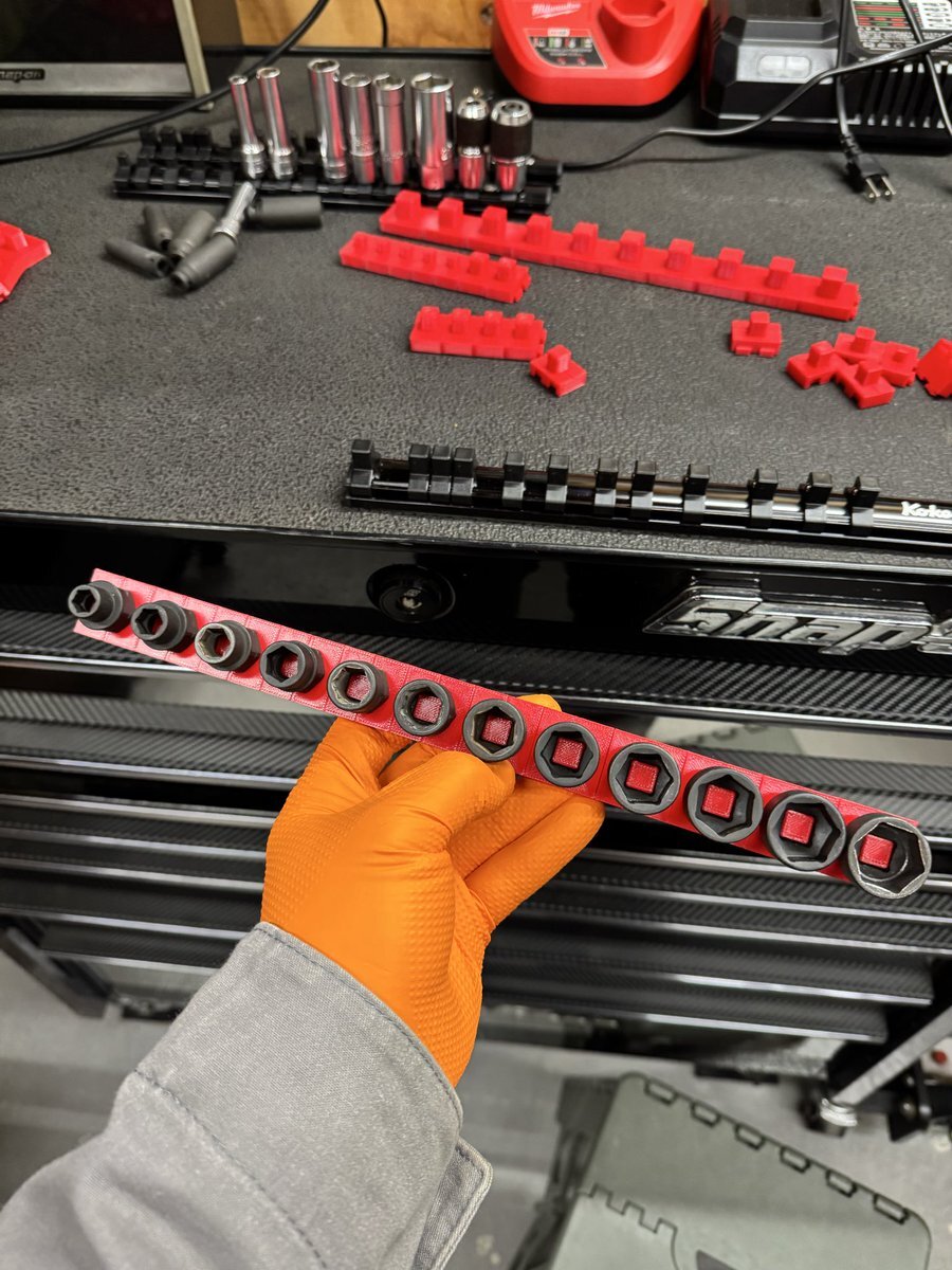 「見てくれ!俺の工具箱」でも使ってる方が多かったので、 ソケットレール変えてみました! これ、結構いいですね😎✨ トルクアダプターの収納は…… @yu_ya983 をパクらせて頂きやした🫡笑 #見てくれ俺の工具箱 #工具収納 #ソケットレール #GEARFIX #整備工具 #整備士ライフ #小林モータース pic.x.com/GhUGMbyd5E