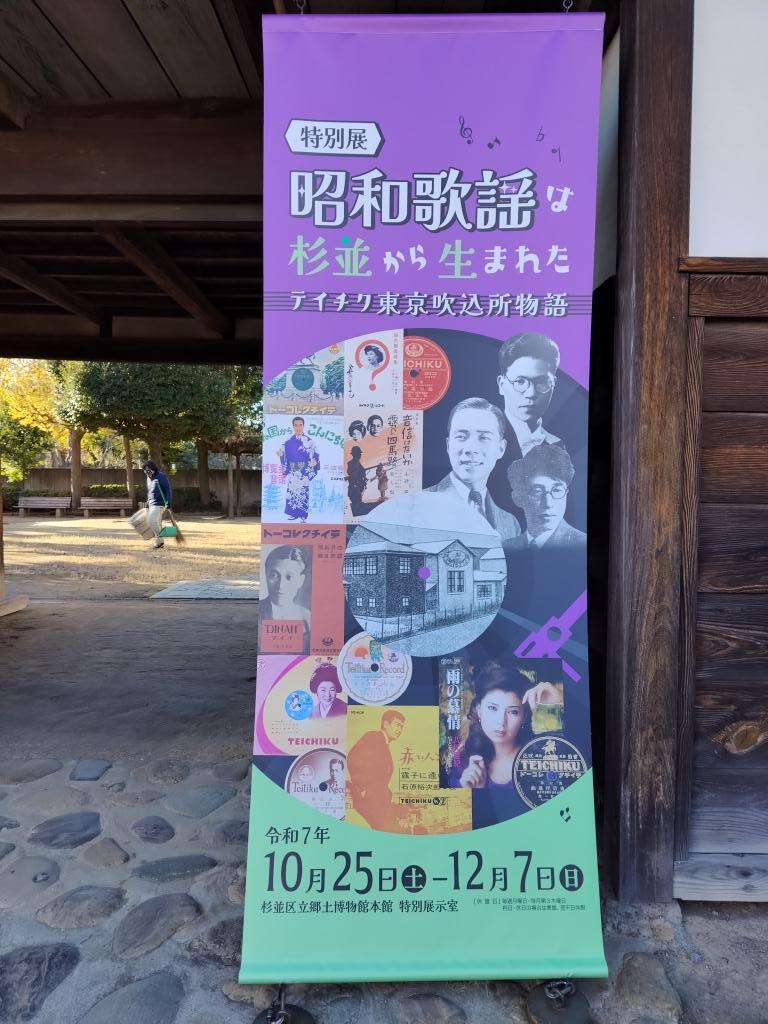 「昭和歌謡は杉並から生まれた ~テイチク吹込所物語」 杉並区郷土博物館 12月5日 テイチク歌手のあれこれを展示 #藤山一郎 氏関係は 昨年 三田キャンパスで開催された「藤山一郎がゆく!」展示物の極一部が並んだ #東海林太郎 氏の燕尾服あり 驚いたのは #小林桂樹 氏の1956年発売レコード pic.x.com/35BmKTmxF6