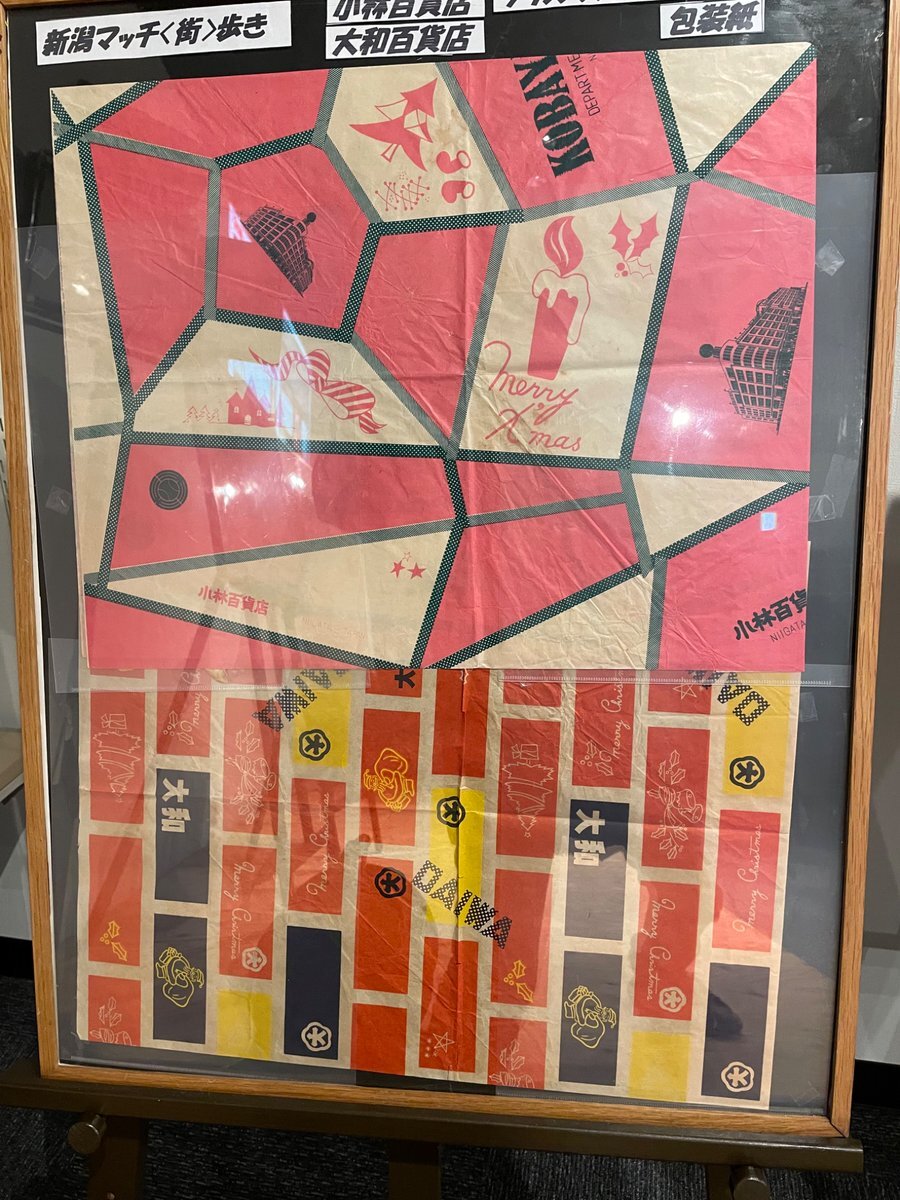 座タイムで展示中❗️小林百貨店(のちの三越)大和デパートのクリスマス包装紙🎄なんか懐かしい・・・こんな時代もあったのね💚 #小林百貨店 #大和デパート #クリスマス包装紙 pic.x.com/djz9IilrcD
