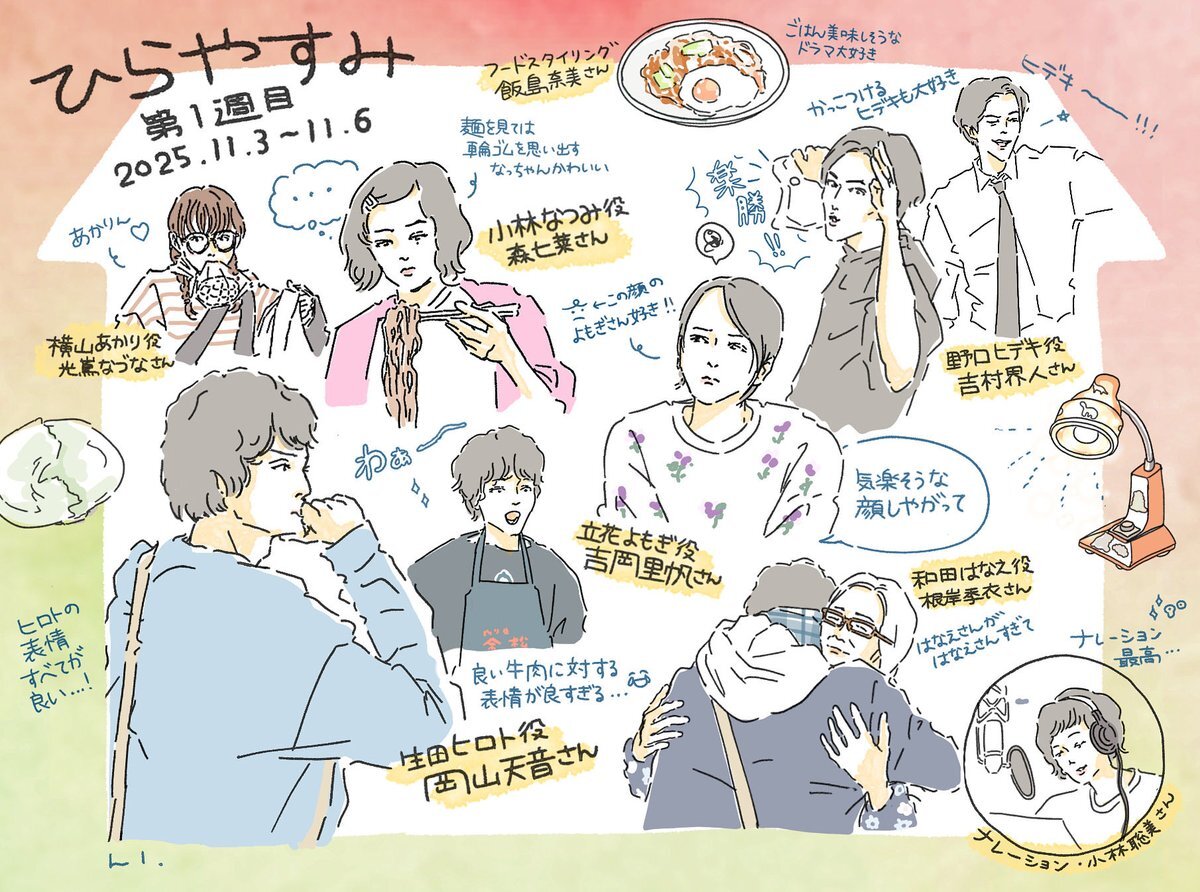 #いつか無重力の宙へ 終わってロスだったけど #ひらやすみ 良い感じ。特に何か起きるわけじゃないのんびりとした時間を過ごすとあっという間に時間過ぎてるという心地良い雰囲気。#吉岡里帆 3番手って凄い。 #岡山天音 #森七菜 #吉村界人 #光嶌なづな #小林聡美 のナレーション良いし劇中歌も気になる x.com/nhk_dramas/sta…