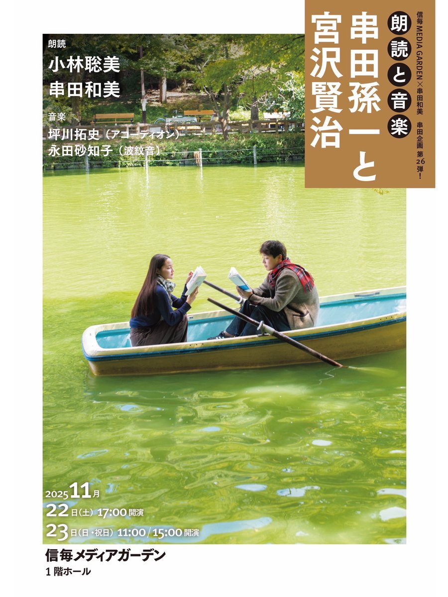 朗読と音楽『宮沢賢治と串田孫一』 今年もポスターの撮影に参加しました!!📖📚 松本公演は信毎メディアガーデンにて11月22日と23日に。 東京では武蔵野公会堂ホールにて12月12日に行われます! #小林聡美 × #串田和美 📖朗読作品 「注文の多い料理店」「星めぐりの歌」「山のパンセ」など pic.x.com/dvBEHHtatW