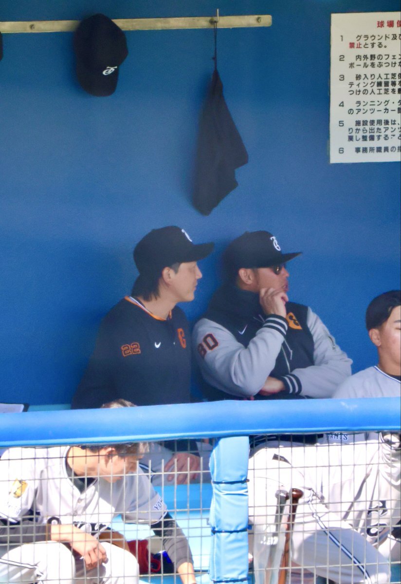 久保コーチから声をかけてストップウォッチ渡していた。 そのままマーさんの登板が終わる4回までキャッチボール以外は側でお話し 🐶さんの時は一軍に帯同してたし、久保コーチとここから少しずつ近くなっていくイメージ 2025.3.20横須賀 #giants #小林誠司 #久保康生 巡回投手コーチ pic.x.com/Xf5QLo51Ie