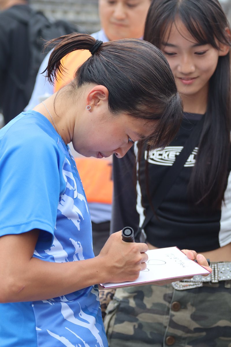 #プリンセス駅伝   アンカーの #棚池穂乃香 選手は区間2位の走りで4人を抜き、順位を10位に押し上げました。 9月の世界選手権女子マラソンで7位入賞した #小林香菜 選手は、表彰式後にステージに呼ばれたり、ファンからサインを求められたりしていました。 pic.x.com/JqsoFhrGjw