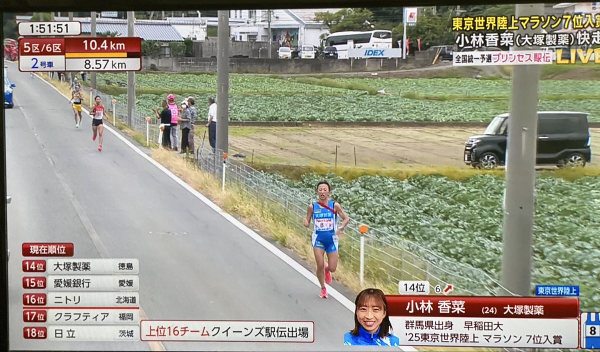 おお! 大塚製薬 14位に上がった! #小林香菜 #大塚製薬 #プリンセス駅伝 pic.x.com/UFCmVlmdTW