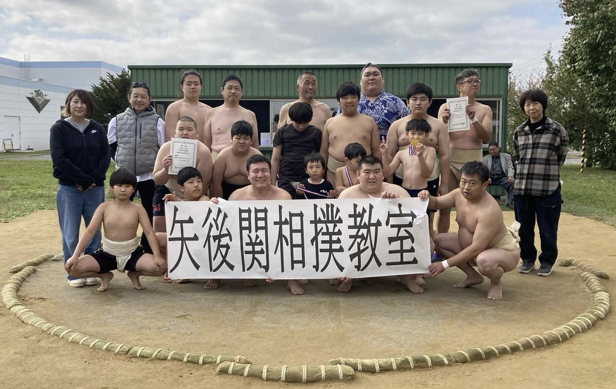 矢後教室の参加のため、北大OB2人と千歳科技の子と津別の新しい土俵に上がって来ました。 矢後関の今後のご活躍を祈念するとともに、私の活動が相撲の裾野を拡げる一助となれるなら続けたい、そんな力をもらえました! #小樽商科大学 #相撲 pic.x.com/muDBH5MoLY