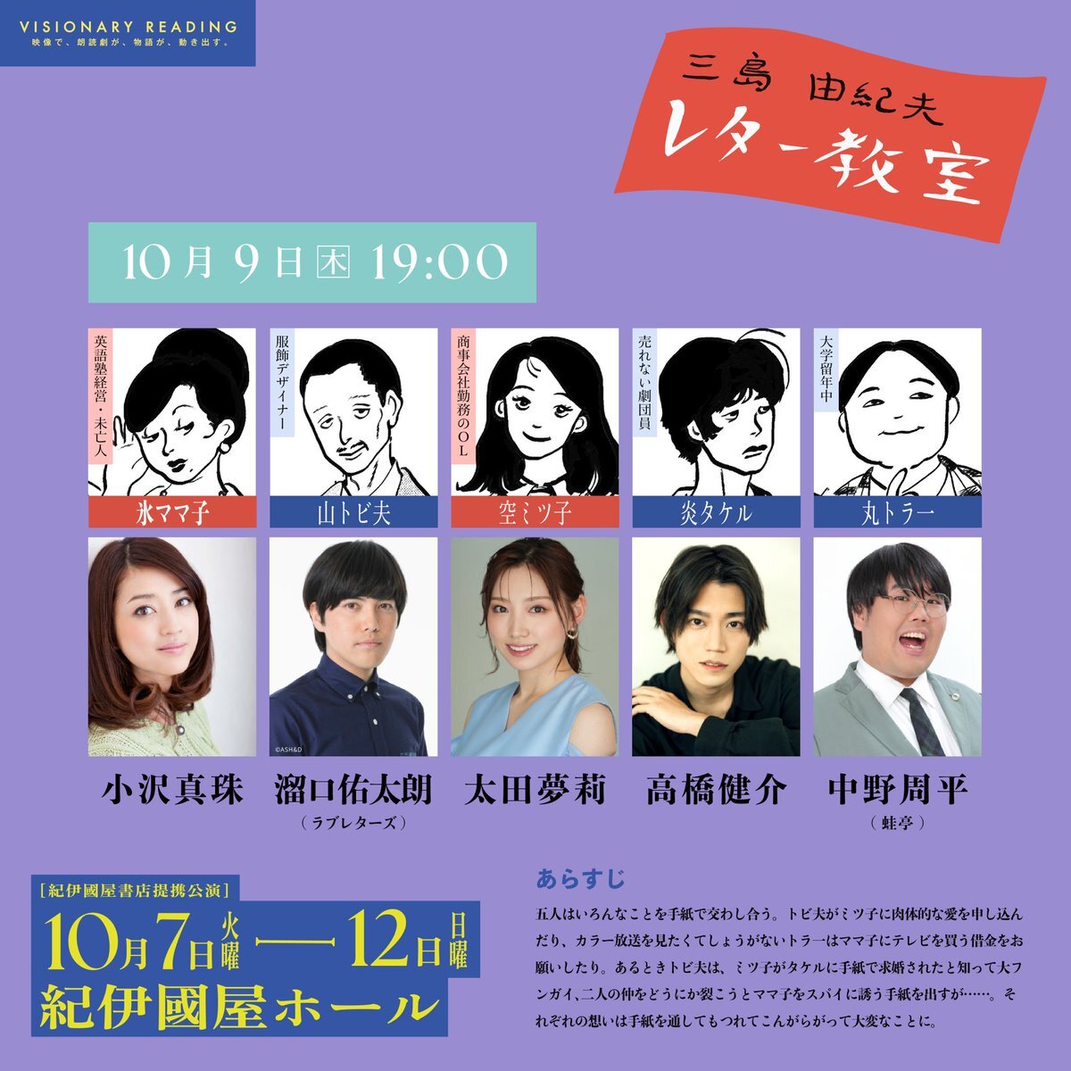 ┏ ━━┅━━━┅━━ ┓ #三島由紀夫レター教室 10/09(木)19:00公演📚 ┗ ━━┅━━━┅━━ ┛ キャスト🕺 #小沢真珠 #溜口佑太朗 #太田夢莉 #高橋健介 #中野周平 ロビー開場🚪 開演の45分前 客席開場💺 開演の30分前 当日券🎟️ ご用意あります☑️ 🔗公式HP aoi-stage.jp/mishima_letter/ x.com/mishima_letter…