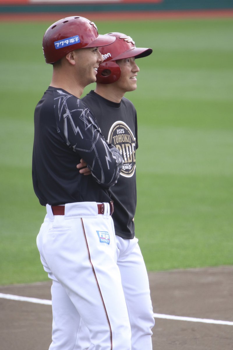 📹練習前のひとコマ 支配下選手契約を結んだ #平良竜哉 選手へ #小深田大翔 選手から熱い(?)お祝いメッセージが🦅🔥 チームメイト全員の拍手を浴びながら練習スタートです👏 #RakutenEagles pic.x.com/YO0VkutICy x.com/Rakuten__Eagle…