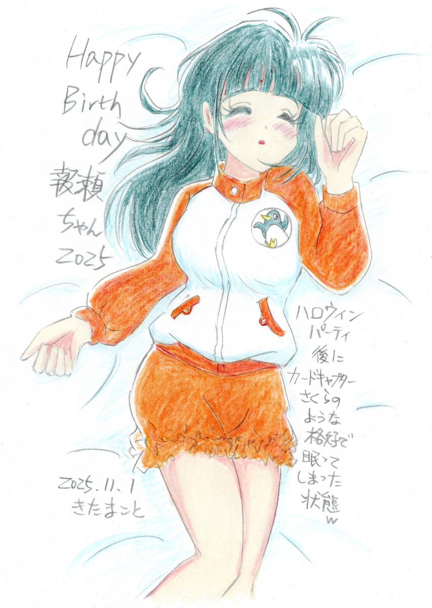 #小淵沢報瀬誕生祭2025 報瀬ちゃん誕生日おめでとう! かぼちゃパンツで仮装したハロウィンパーティ後に眠ってしまった状態の絵でお祝いですw #小淵沢報瀬生誕祭2025 #宇宙よりも遠い場所 #よりもい pic.x.com/K85nkw5tY4
