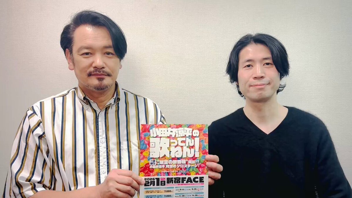 \\📢ゲスト&司会 出演者発表✨// "架空の歌番組"がコンセプトのエンタメ歌謡ライブ🎤 #小田井涼平の歌ってんねん! 🍭ゲスト #岩永洋昭 #東京力車  🍭司会 #アサヌマ理紗 #佐々木光弘 🗓️2026/2/1㈫ 【昼の部】開場13:00/開演14:00 【夜の部】開場17:00/開演18:00 🎪新宿FACE #小田井涼平