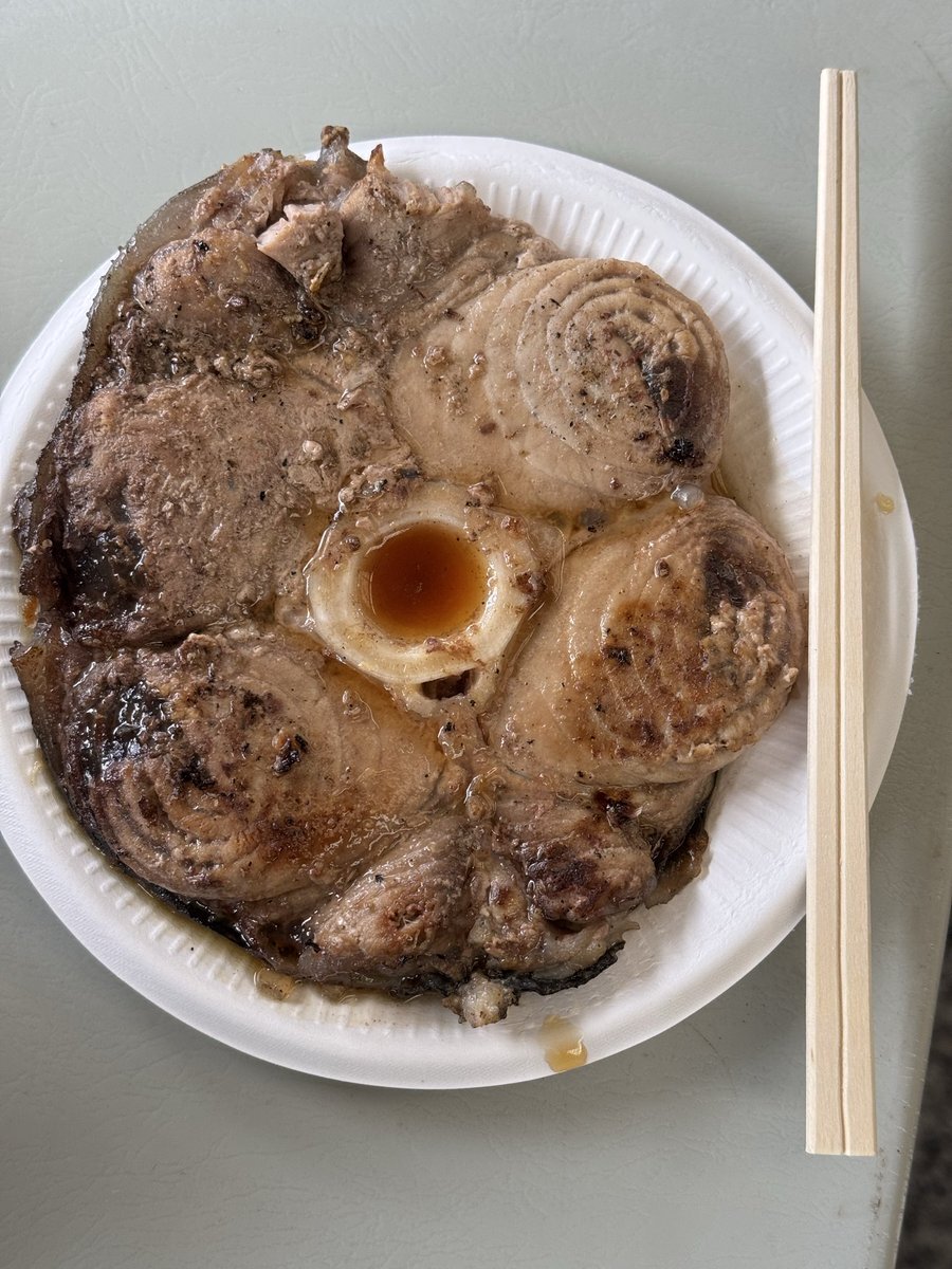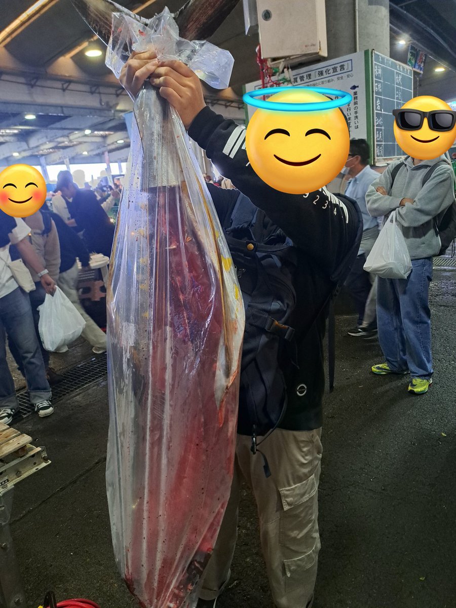 めいめいが捌いたキハダマグロの背骨付き中落ちをじゃんけんの末に競り落とす✌️(ちょー)← これ長野まで持って帰る覚悟したけど市場で剥き身にしてくれたので無事みんなでお魚パーティー&一部を郵送出来ました!しばらくマグロいいやってくらい食べた!(笑) #小田原あじ・地魚まつり2025 #花田藍衣 pic.x.com/oirL8u5ntP