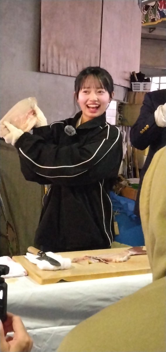 返信先:@mei_hanadaやっぱマグロでかいよね😳すっごいしっかり骨に沿って😅捌いてる🔪の職人並でお見事~🎵👏😊めいめいならではの強みだね✨😊色んなとこでいーっぱい披露出来るといいね‼️✊😃 #お魚捌きアイドル #花田藍衣 #AKB48 #小田原あじ・地魚まつり2025