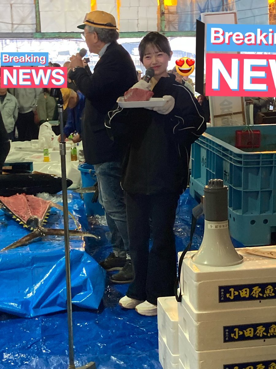 見事な包丁さばきを披露した、めいちゃんご退場🐟 お疲れ様でした❗️✨✨ #花田藍衣 #小田原漁港 pic.x.com/Rp0PtHViO5