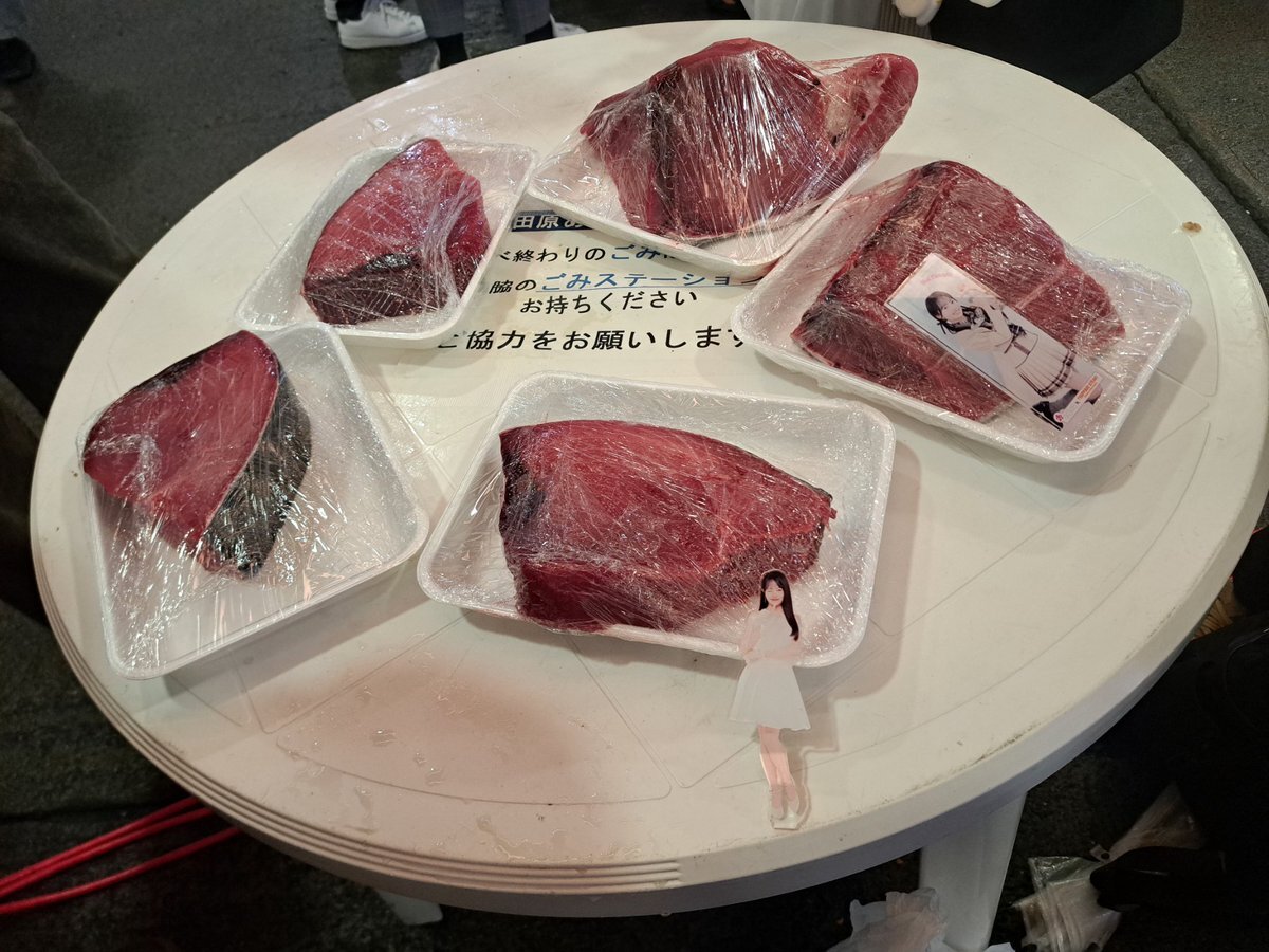 マグロのカマを持つアイドル はなだめいちゃん🐟 #小田原漁港 #小田原あじ地魚まつり #花田藍衣 pic.x.com/VbhBllepX5