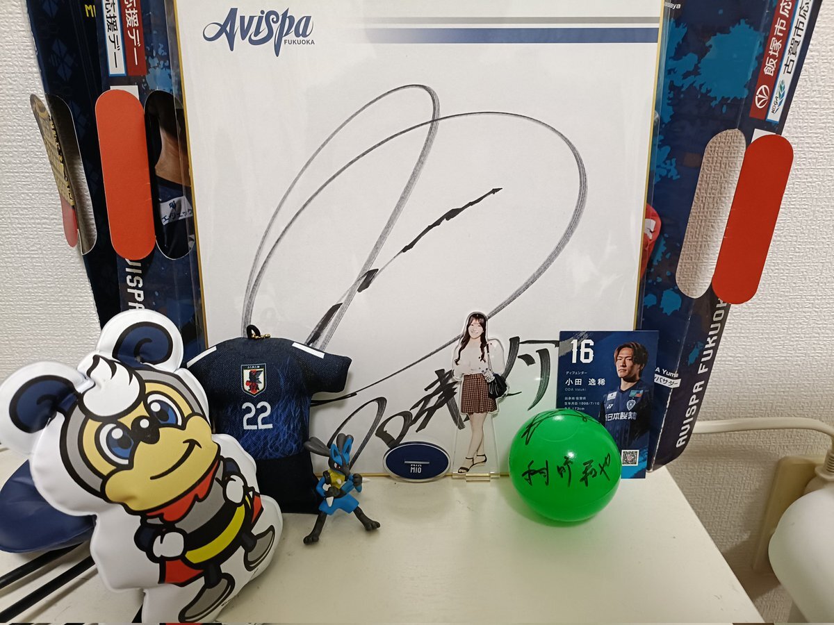 スペチケ、サインも沢山貰えて、逸稀に感謝✨ホームユニ2枚に魂が入って、シーズン終了間に合って良かった😆❤マーク☺も入れてくれて、宝物が増え逸稀パワーを沢山貰った日でした #アビスパ福岡 #スペチケ #小田逸稀 pic.x.com/wA2FuSsiKA